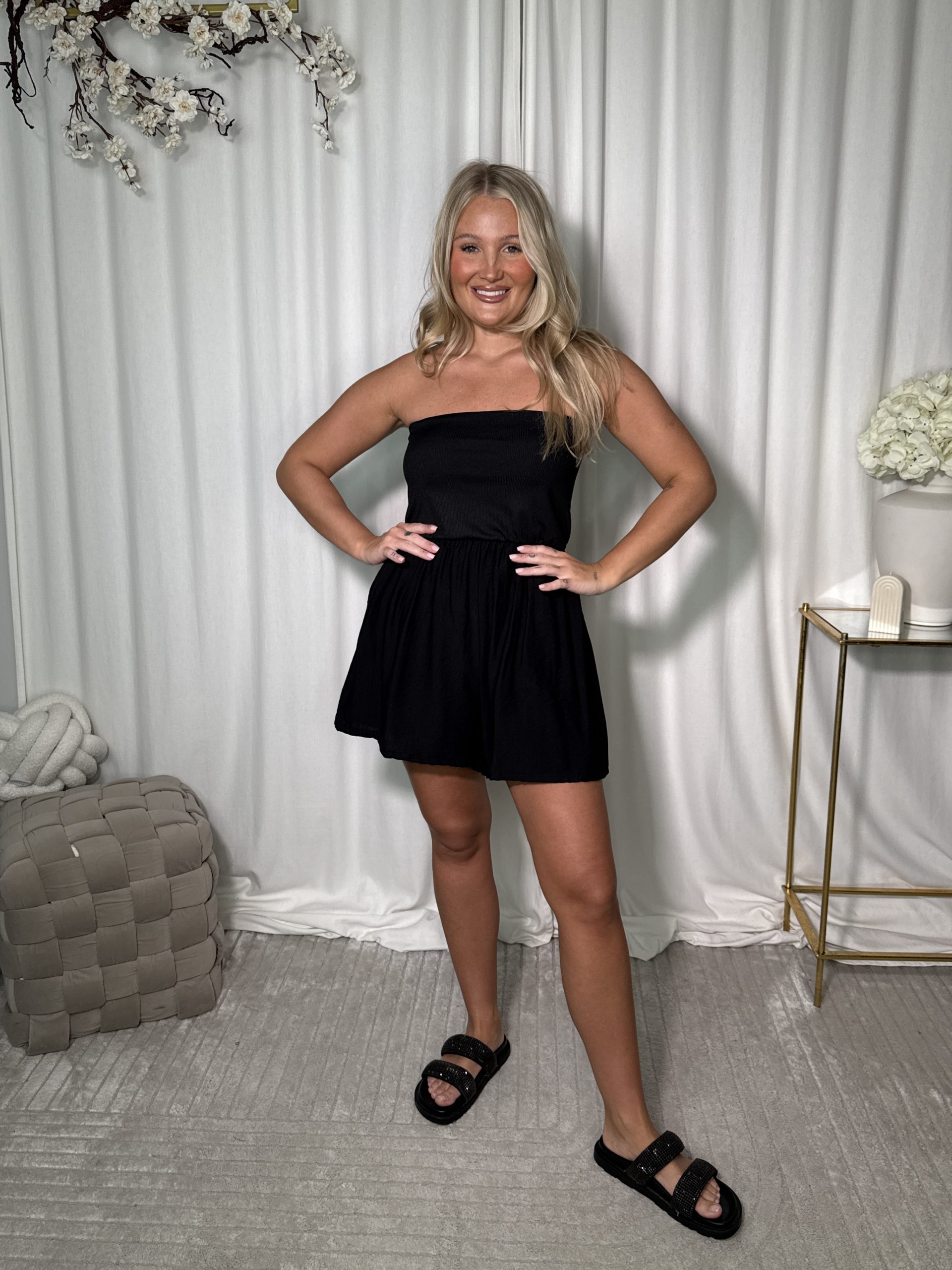 Ultra komfortowy kombinezon Galija na lato z elastycznym topem bez ramiączek i luźnymi, lekko rozkloszowanymi nogawkami. Idealny na gorące dni – wskakujesz w niego raz i jesteś gotowa! Dostępny w kilku kolorach, które dopasujesz do swojego nastroju.