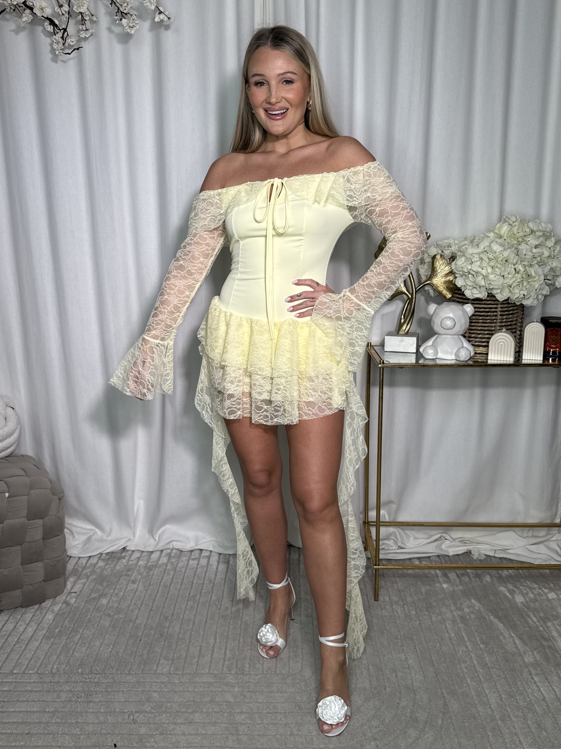 Romantyczny kombinezon wykończony subtelną koronką. Długie koronkowe rękawy i lekko rozkloszowany dół nadają mu lekkości, a wiązanie przy dekolcie pięknie podkreśla kobiecy charakter. Idealny na zbliżające się walentynki i przyjęcia. Dostępny w trzech kolorach.