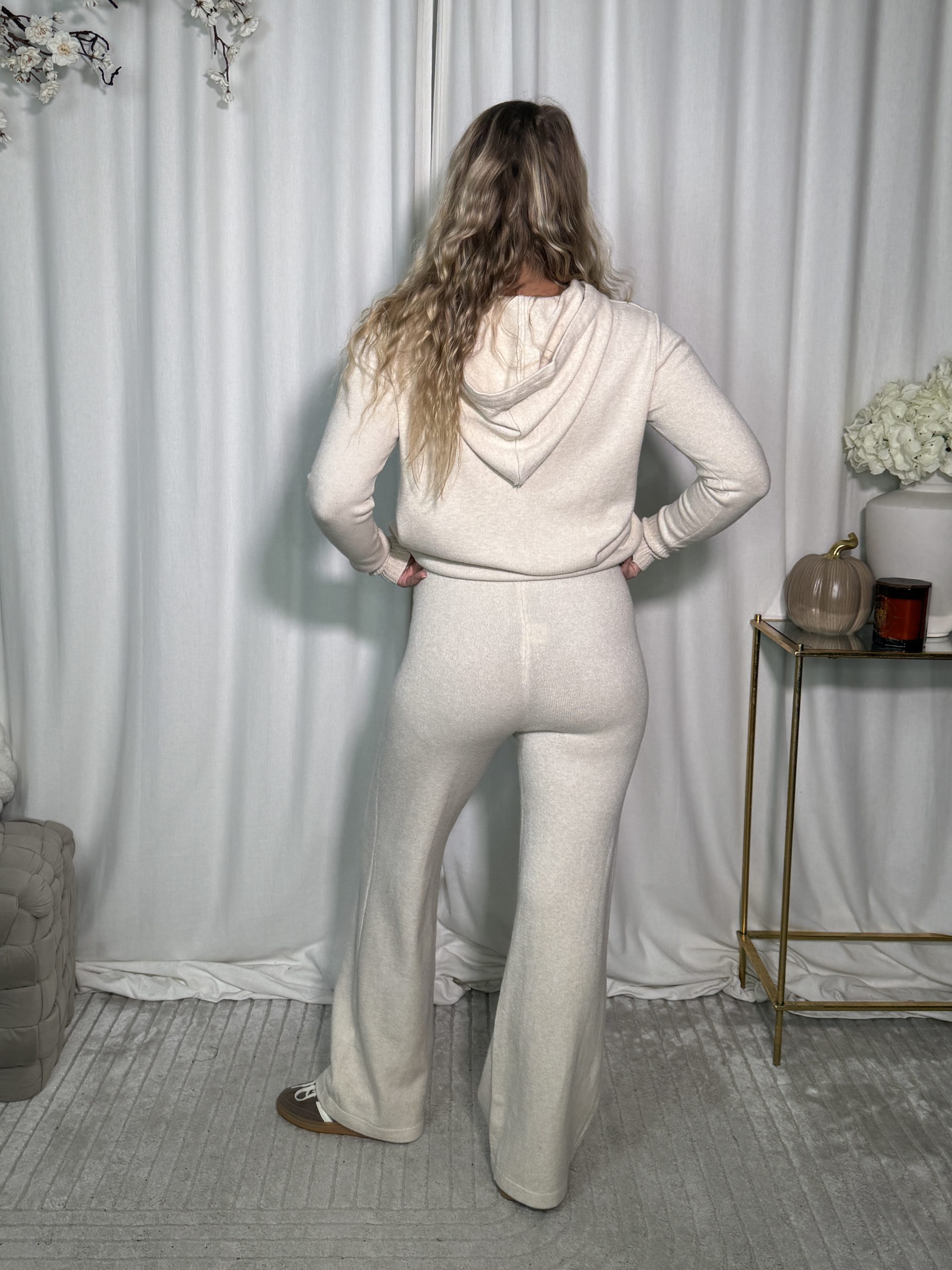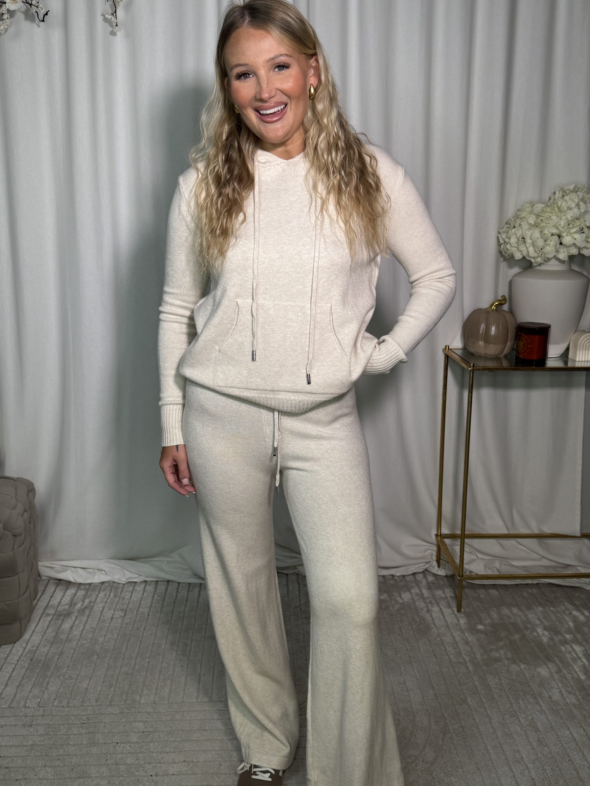 Beżowy komplet HOPPY to połączenie wygody i nowoczesnego stylu. Składa się z bluzy z kapturem i szerokich spodni o wyjątkowej strukturze materiału, która nadaje całości niepowtarzalnego charakteru. Idealny na co dzień, do podróży lub stylowego odpoczynku.