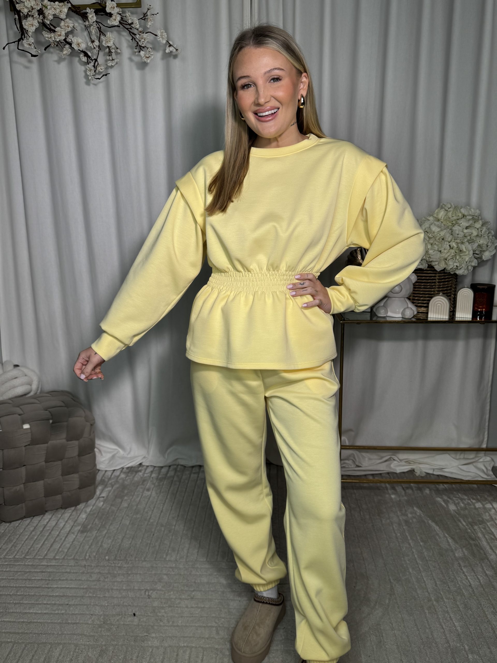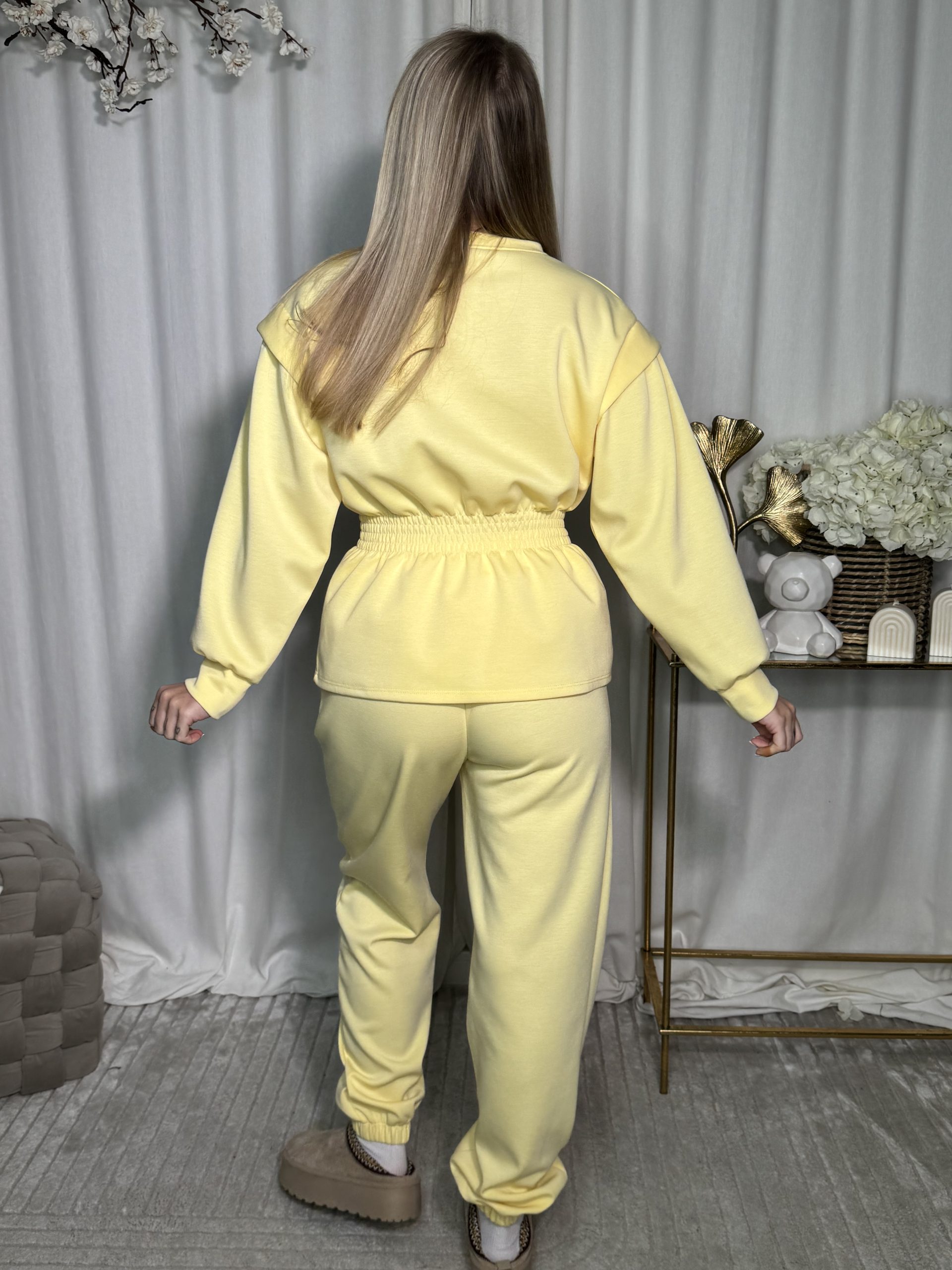 Stylowy i bardzo ciekawy komplet dresowy, składający się z bluzki z podkreśloną talią, oraz wygodnych spodni z elastycznym pasem. Wykonany z miękkiej, przyjemnej w dotyku dzianiny, łączy komfort noszenia z kobiecym , nowoczesnym fasonem.