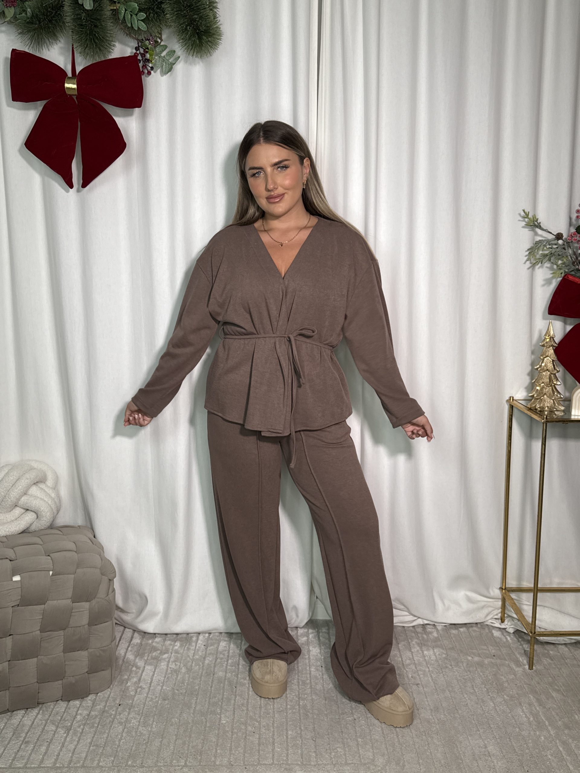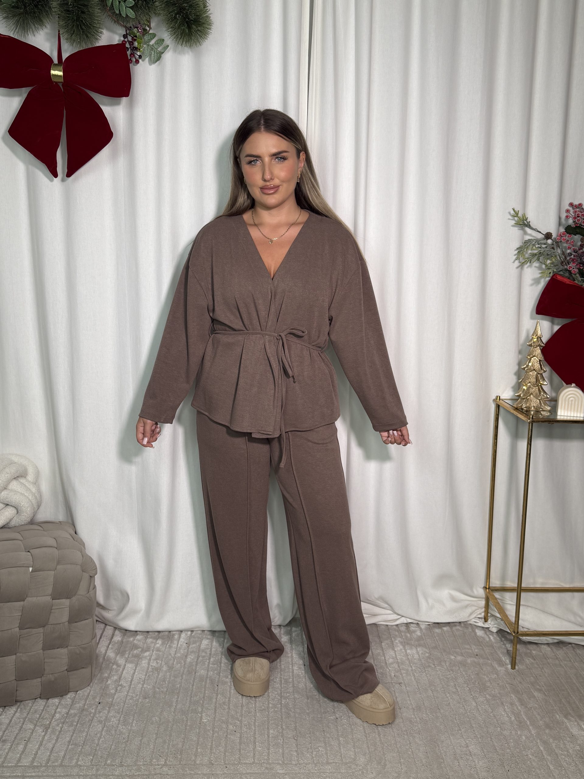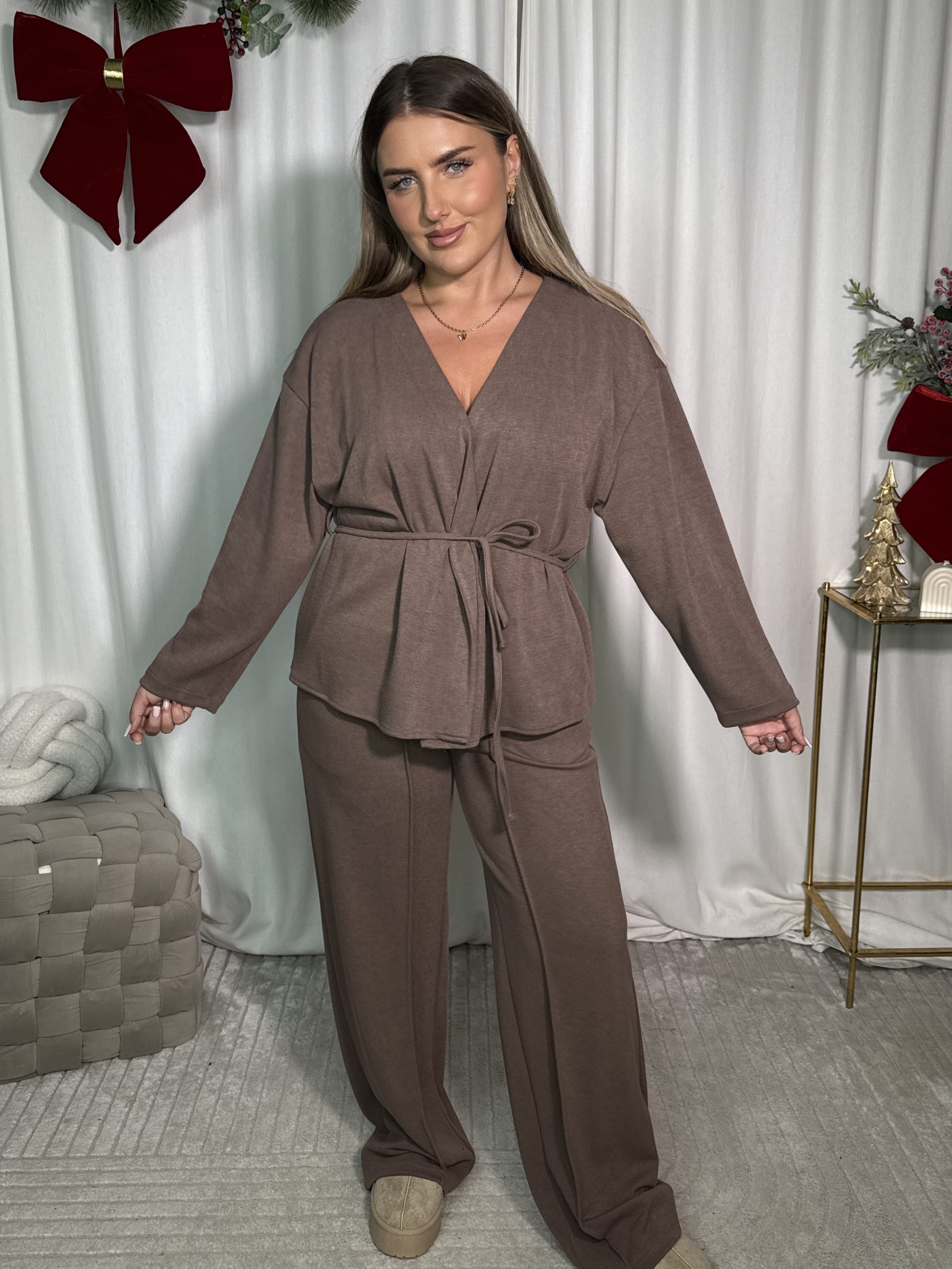 Cappuccino komplet sweterkowy to idealne połączenie wygody i stylu. Zestaw składa się z kardiganu i spodni, które tworzą spójną, modną całość. Miękki materiał zapewnia komfort noszenia zarówno na co dzień, jak i podczas relaksu w domu.