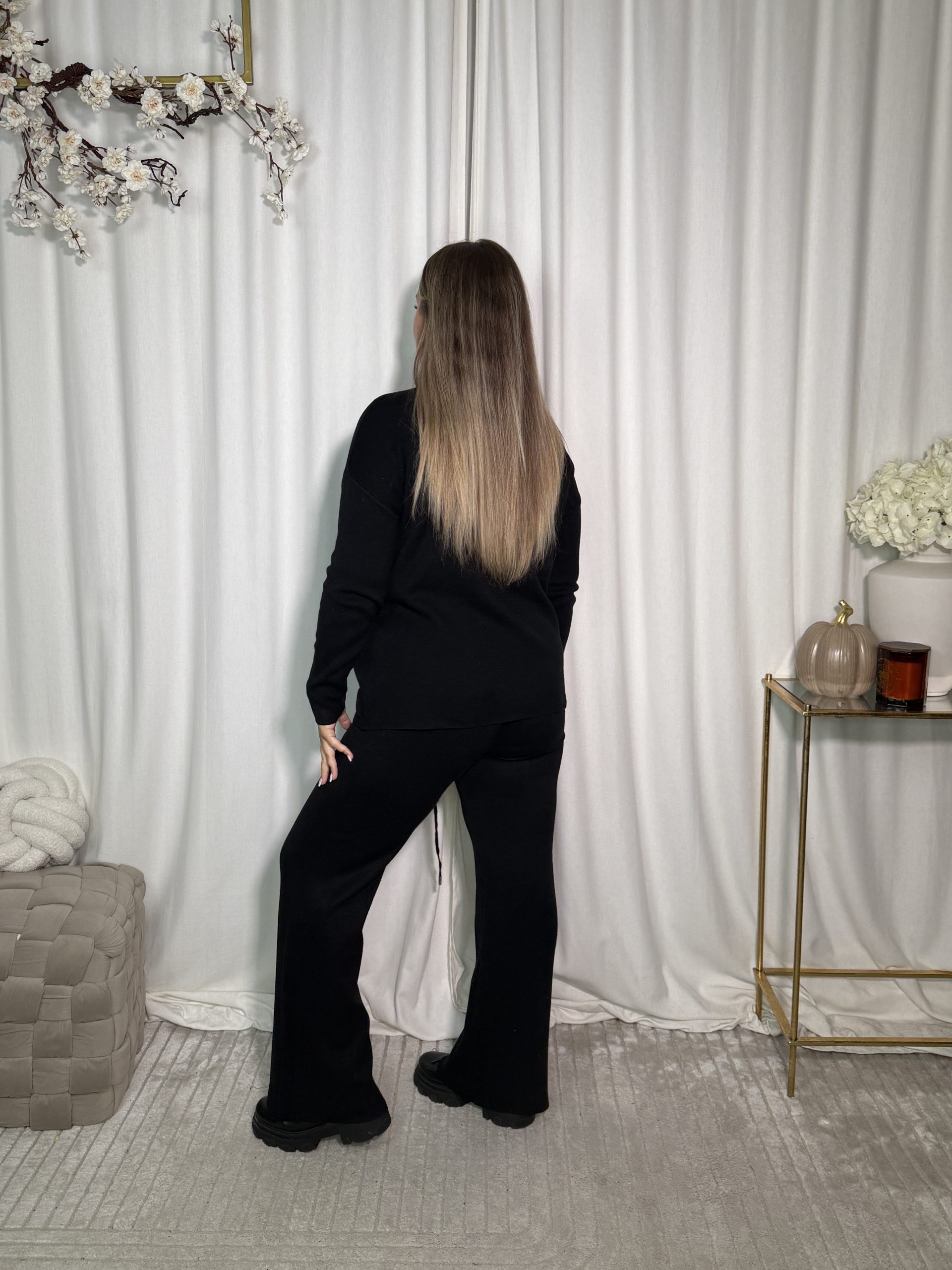 Komplet Marbeli to stylowa propozycja dla kobiet ceniących elegancję w codziennym wydaniu. Składa się z bluzki z dekoltem pod samą szyję i spodni typu dzwony, wykonanych z materiału o wyjątkowej, wafelkowej strukturze. Miękki, elastyczny materiał pięknie układa się na sylwetce, zapewniając wygodę i modny wygląd.