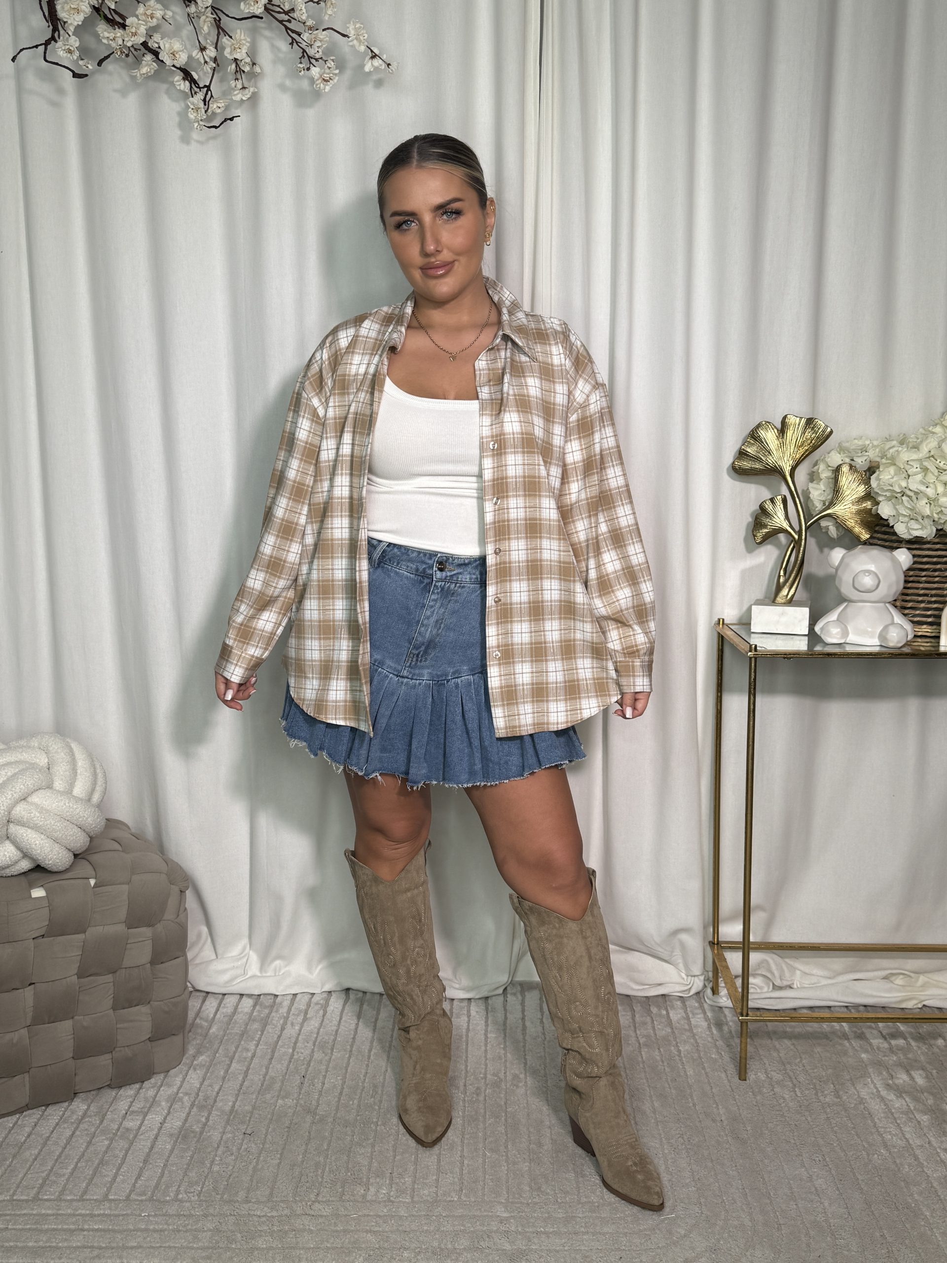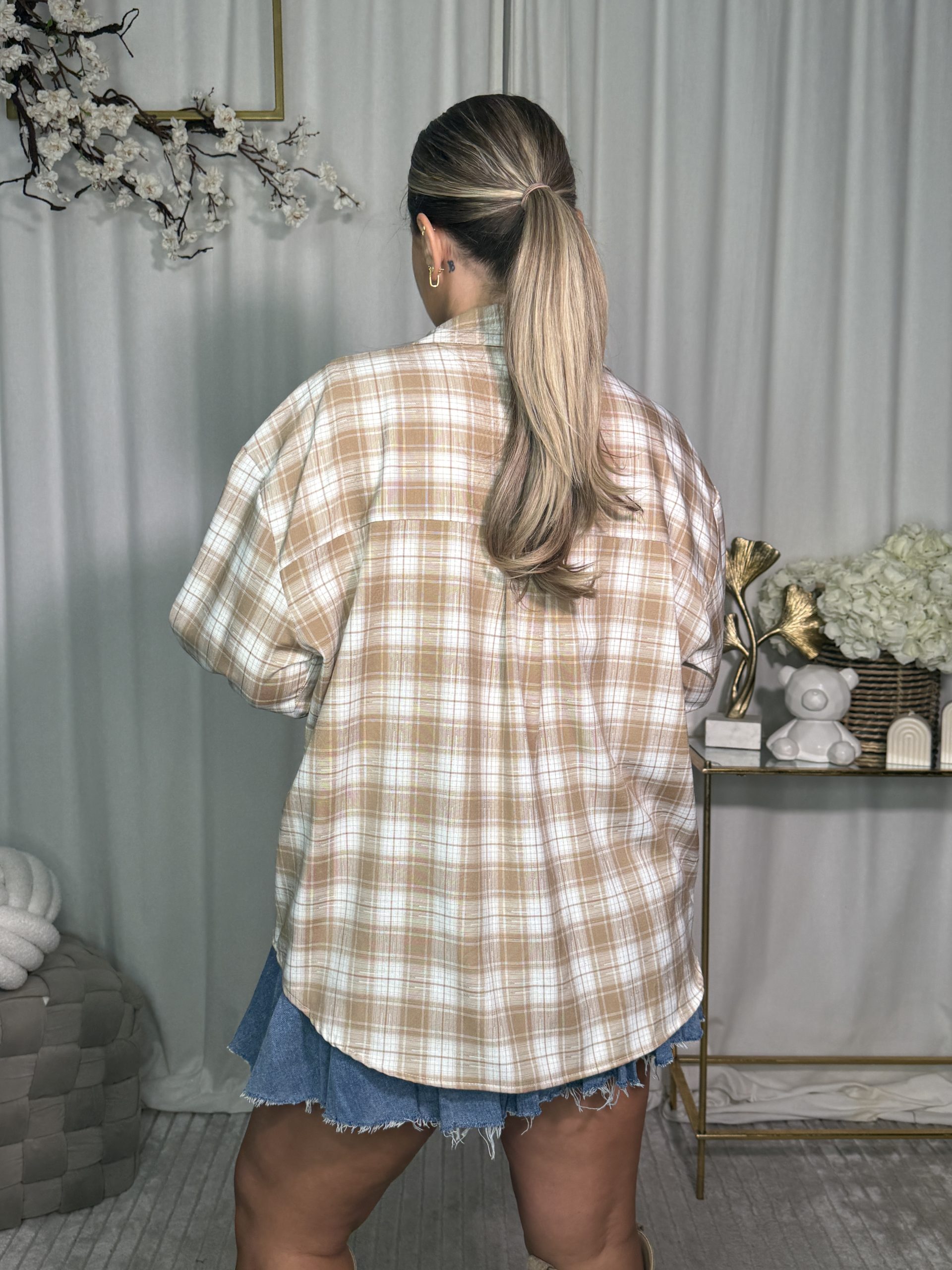 Stylowa koszula w kratę o luźnym kroju, wykonana z miękkiego, przyjemnego w dotyku materiału. Klasyczny kołnierzyk i neutralna kolorystyka sprawiają, że świetnie sprawdzi się zarówno noszona solo, jak i jako narzutka do codziennych stylizacji. Dostępna w trzech wariantach kolorystycznych.
