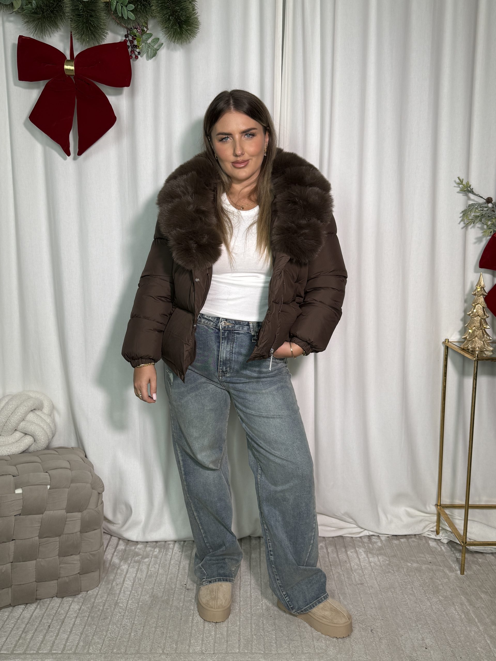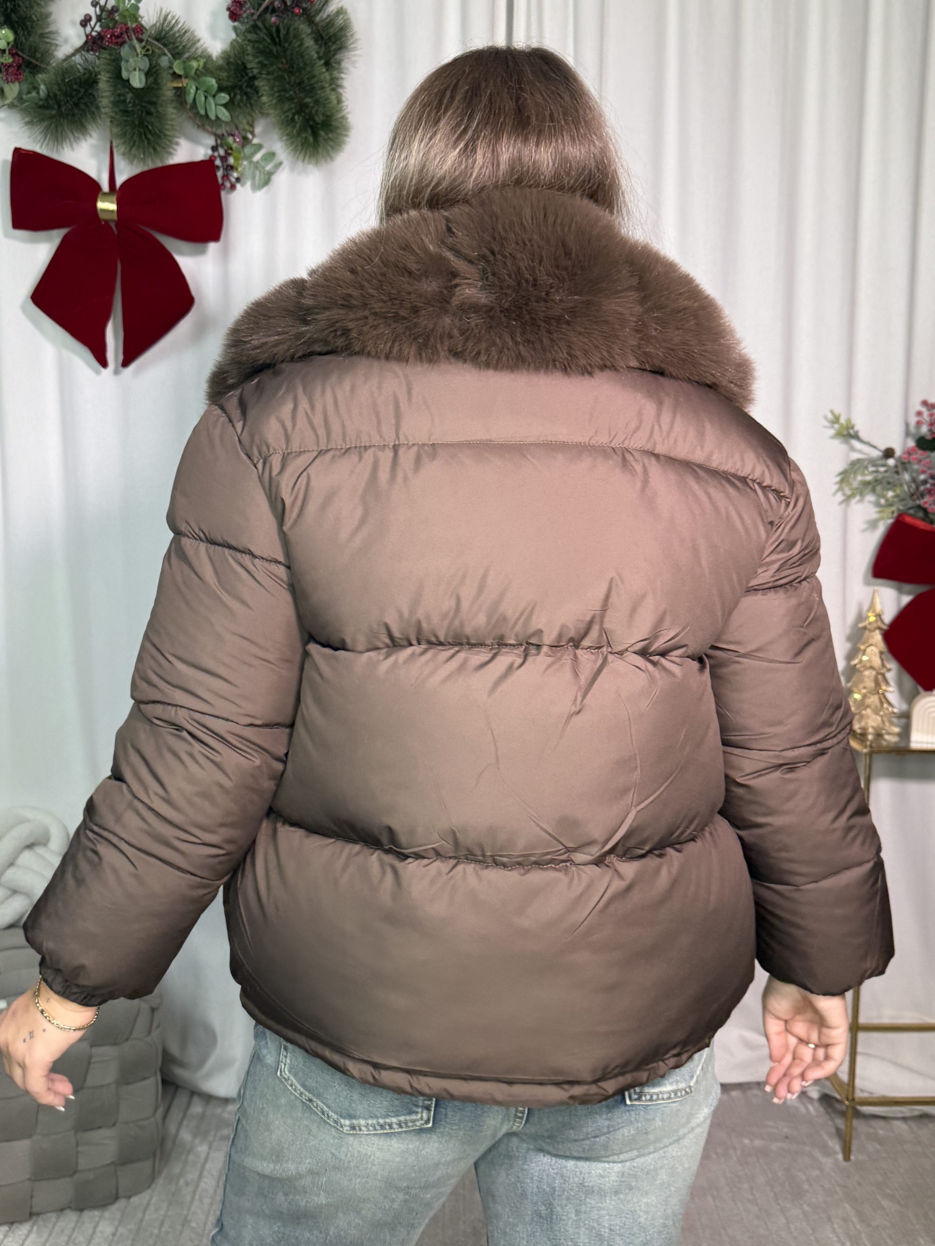 Kurtka krótka z czekoladowym futerkiem AMMY to stylowa i funkcjonalna propozycja na chłodniejsze dni. Wykonana z wytrzymałego materiału, zapewnia ochronę przed wiatrem i zimnem, a miękkie, przyjemne w dotyku futerko dodaje jej eleganckiego i ciepłego akcentu. Krótki fason podkreśla sylwetkę, nadając stylizacji nowoczesnego charakteru. Kurtka jest uniwersalna i doskonale komponuje się zarówno z casualowymi, jak i bardziej eleganckimi outfitami.