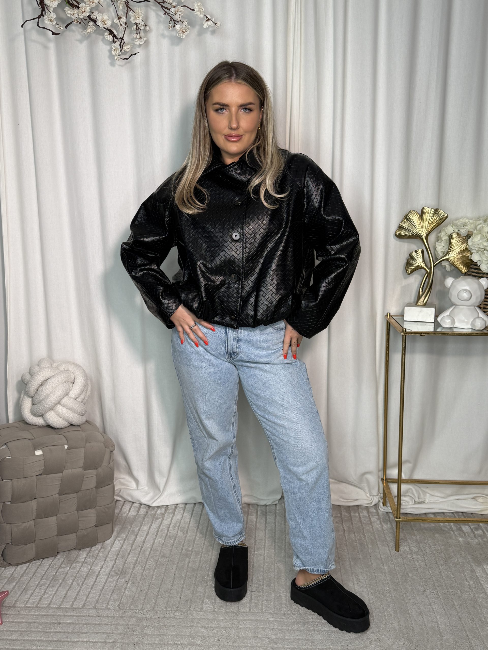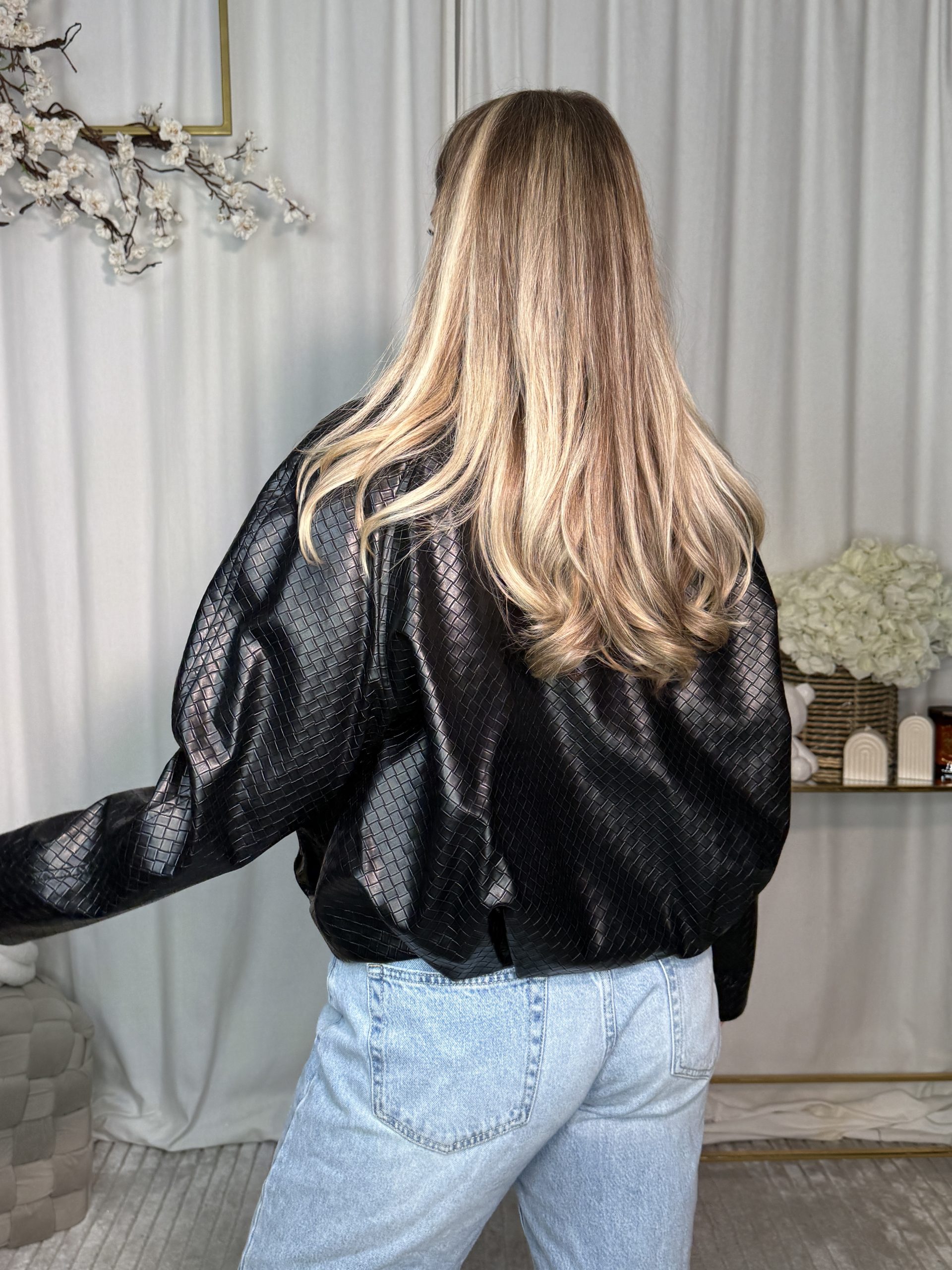 Kurtka skórzana oversize’owy model, idealny do nowoczesnych, miejskich stylizacji. Charakteru dodaje jej struktura we wzorek w kratkę skóry oraz luźny, swobodny fason. Wykonana z imitacji skóry, sprawdzi się doskonale w sezonie przejściowym. To propozycja dla kobiet ceniących styl i wygodę w jednym.