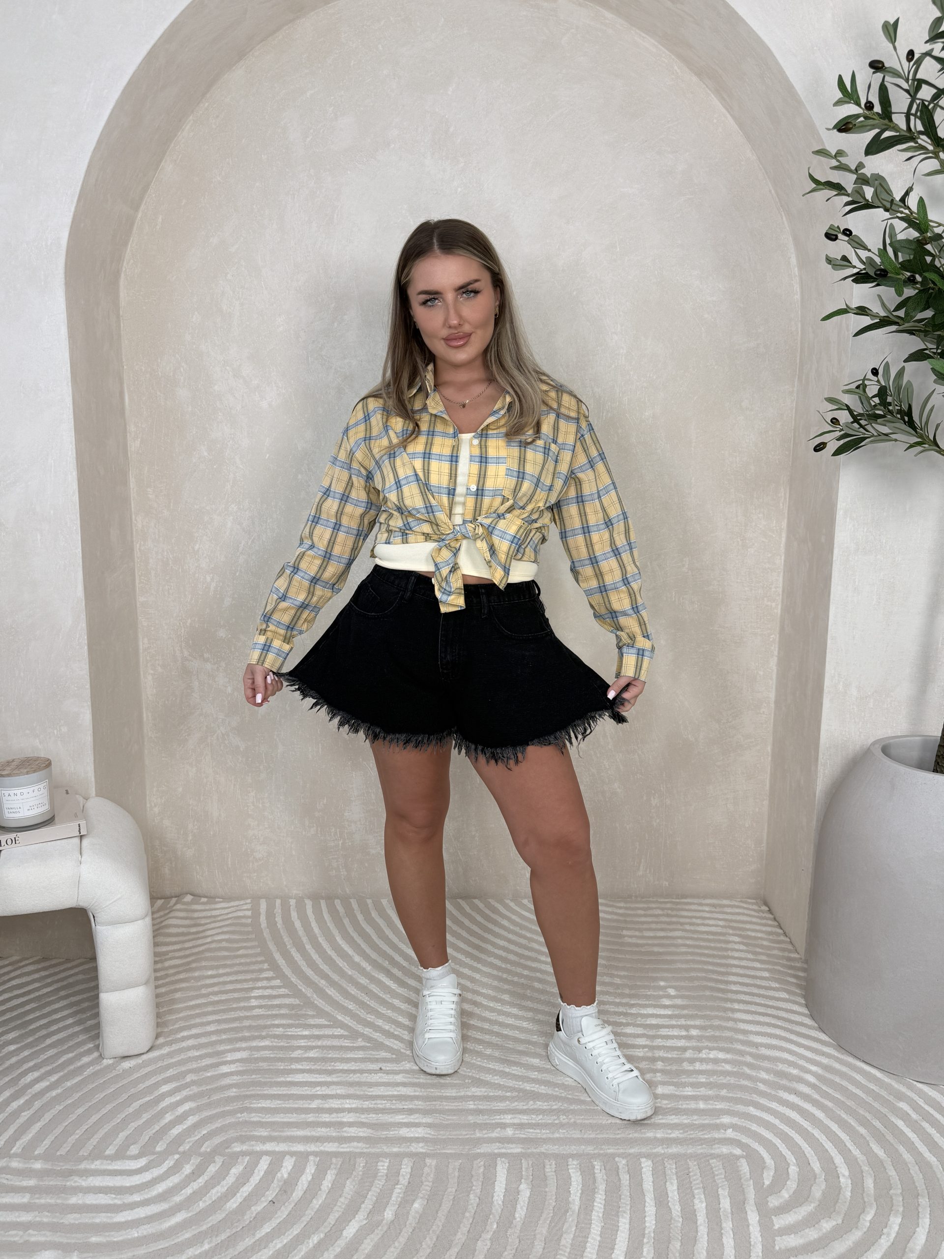 Modne jeansowe shorty w trzech kolorach posiadają elastyczną gumkę w pasie co zapewnia komfort noszenia. Posiada stylowe postrzępione wykończenie na samym dole spodenek, nadaję to całości drapieżnego charakteru. Idealne na letni dni do połączenia tak naprawdę z przeróżnymi górami.