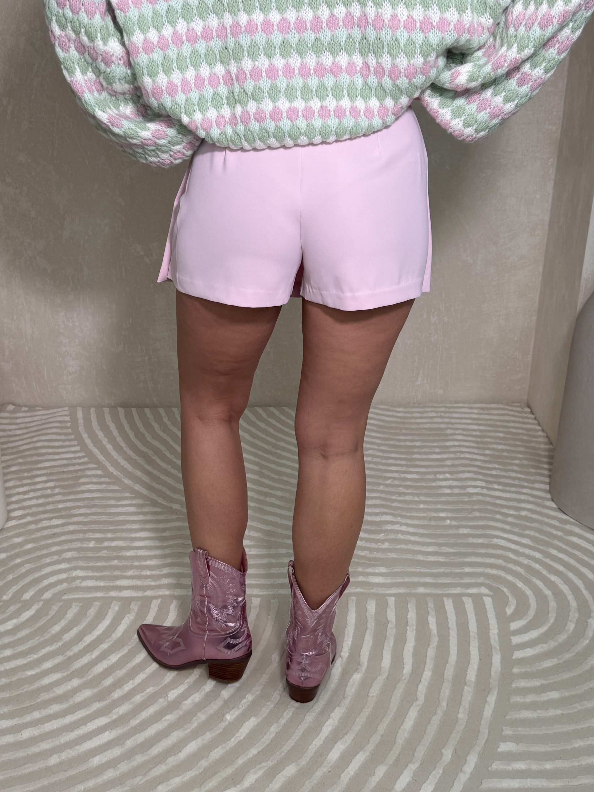Spódnico – spodenki o prostym a zarazem bardzo eleganckim kroju. Wyglądają jak spódnica a pod nimi kryją się shorty. Dzięki nim produkt jest bardzo wygodny oraz komfortowy w noszeniu. Idealne na miejskie stylówki, dostępne w trzech kolorach black, baby pink oraz butter yellow.