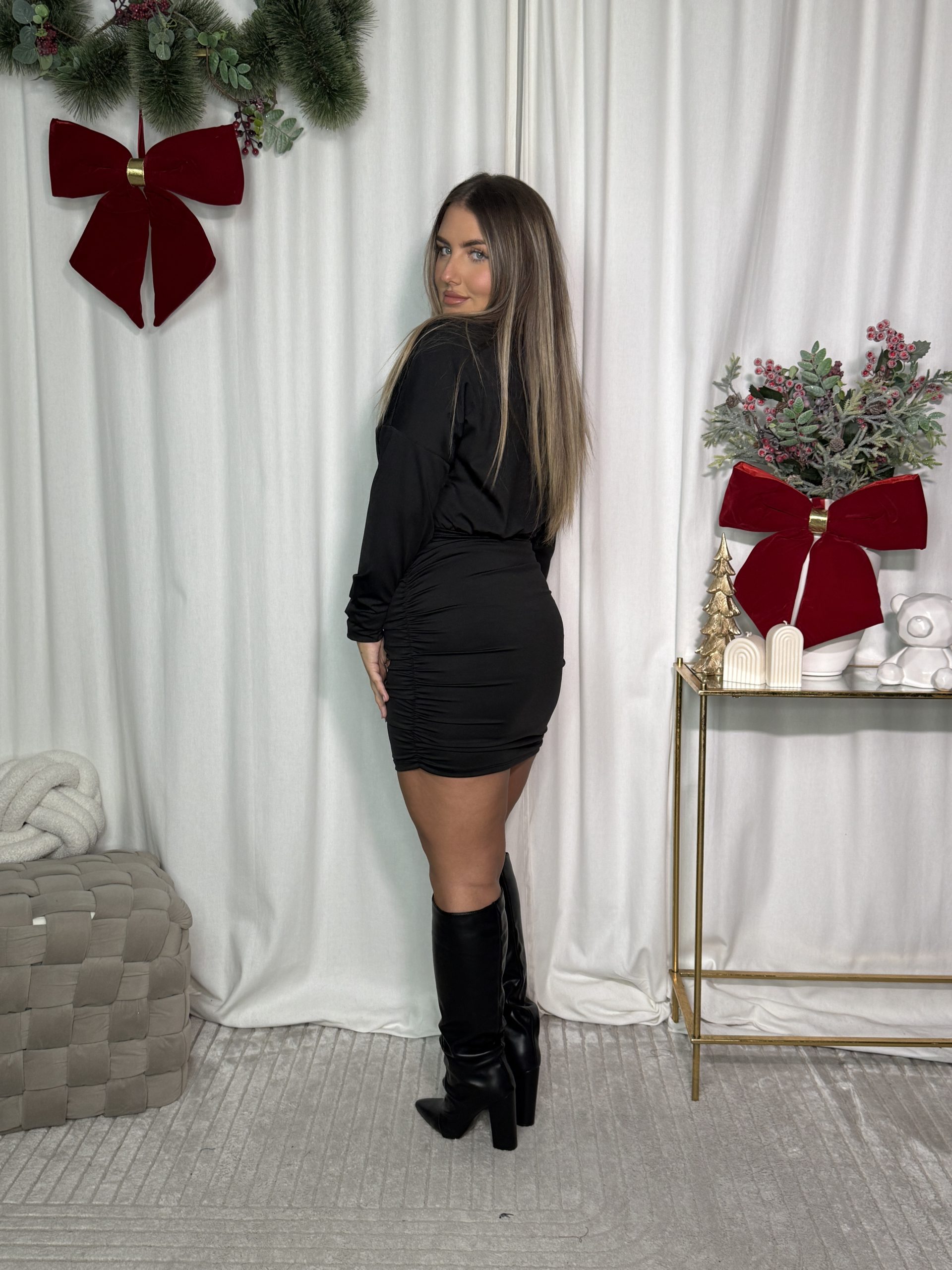 Sukienka to kwintesencja nowoczesnej, minimalistycznej elegancji. Jej dopasowany krój podkreśla sylwetkę, a miękko układający się golf dodaje całości wyrafinowanego charakteru. To model, który łączy wygodę z kobiecą zmysłowością. Dół sukienki zdobi subtelne marszczenie, które nie tylko modeluje figurę, ale także nadaje jej lekkości i modowego wykończenia. Brązowy odcień dodaje ciepła i sprawia, że doskonale wpisuje się w jesienne i zimowe stylizacje, ale świetnie prezentuje się również przez cały rok.
