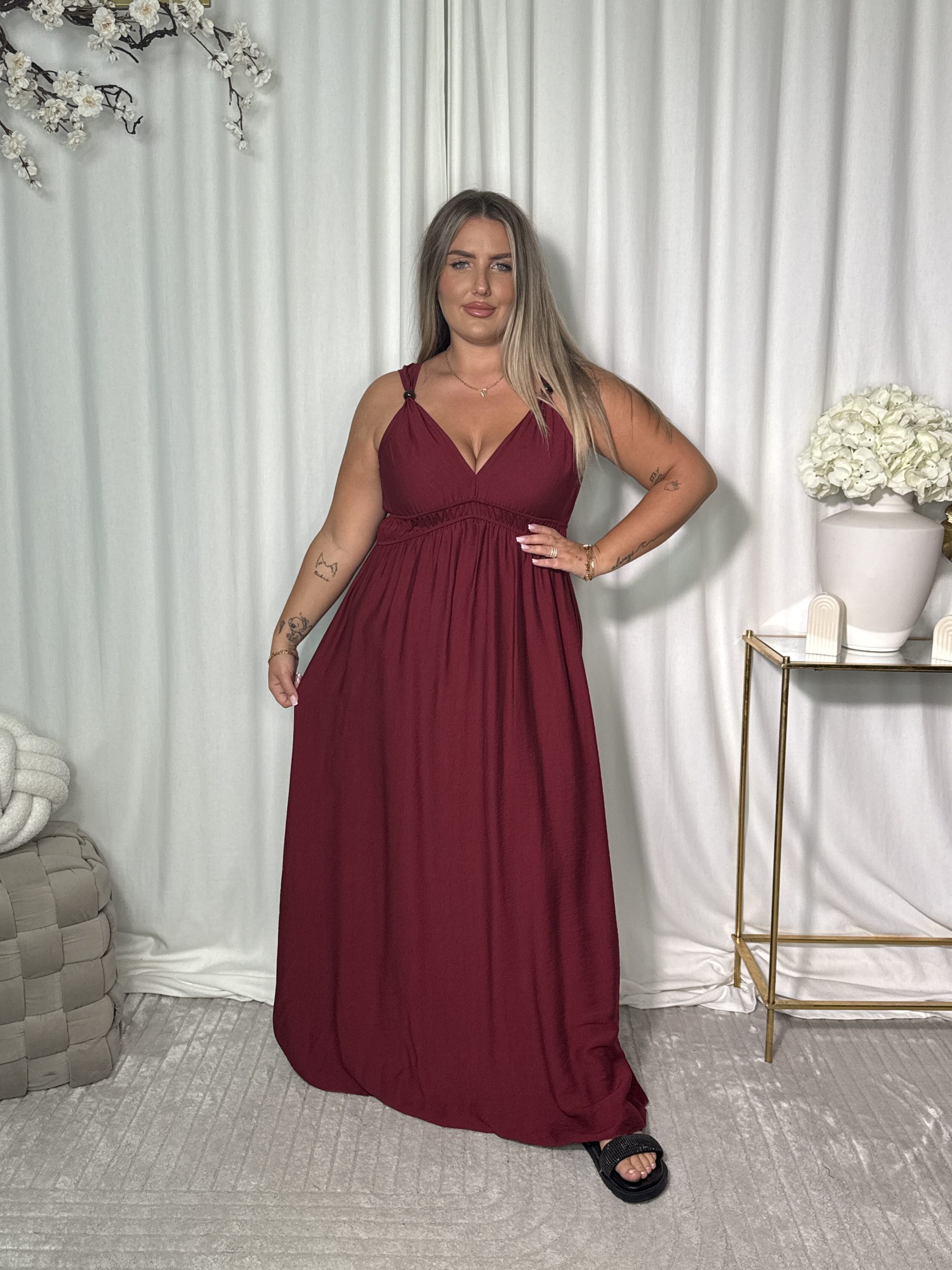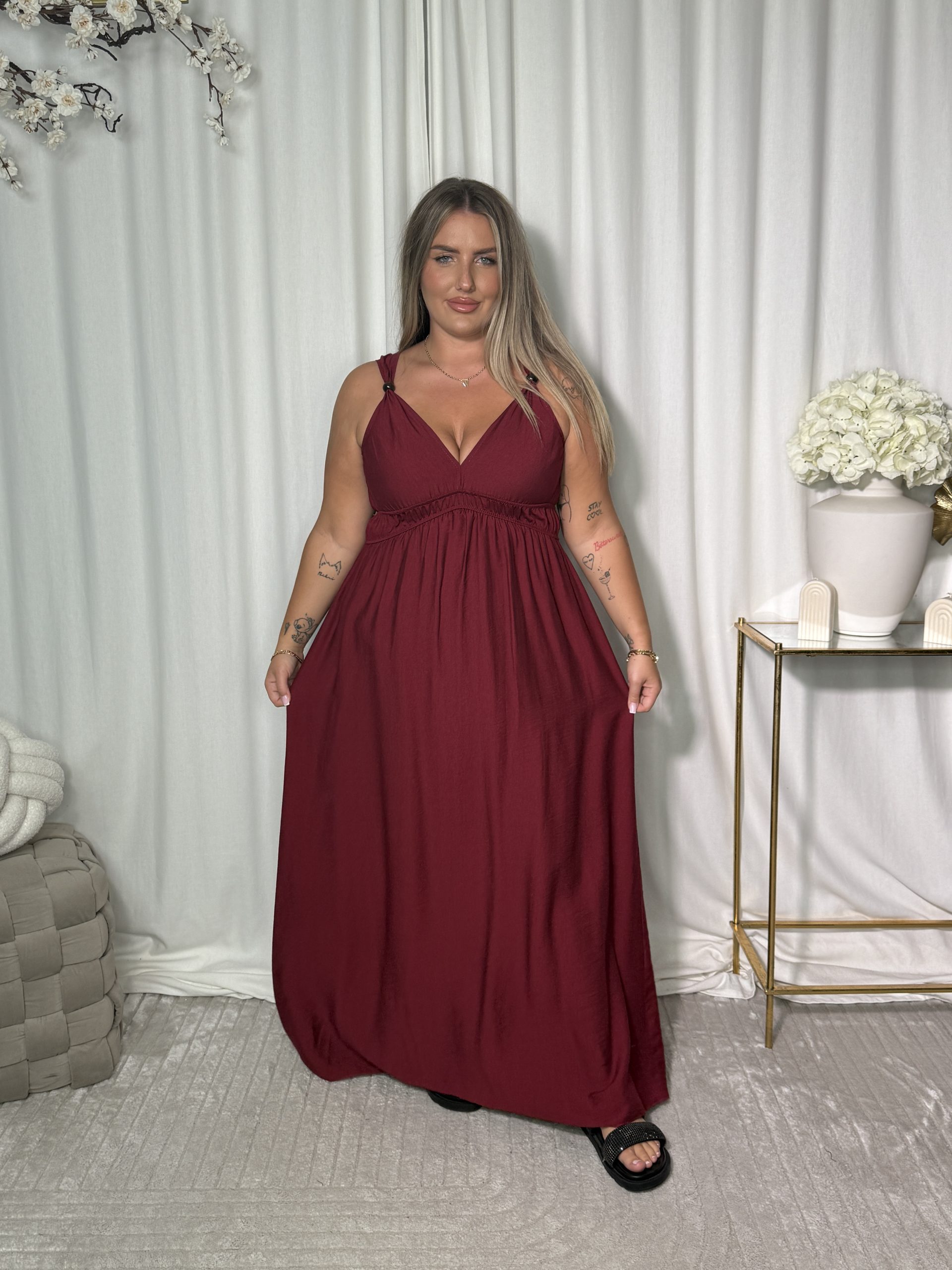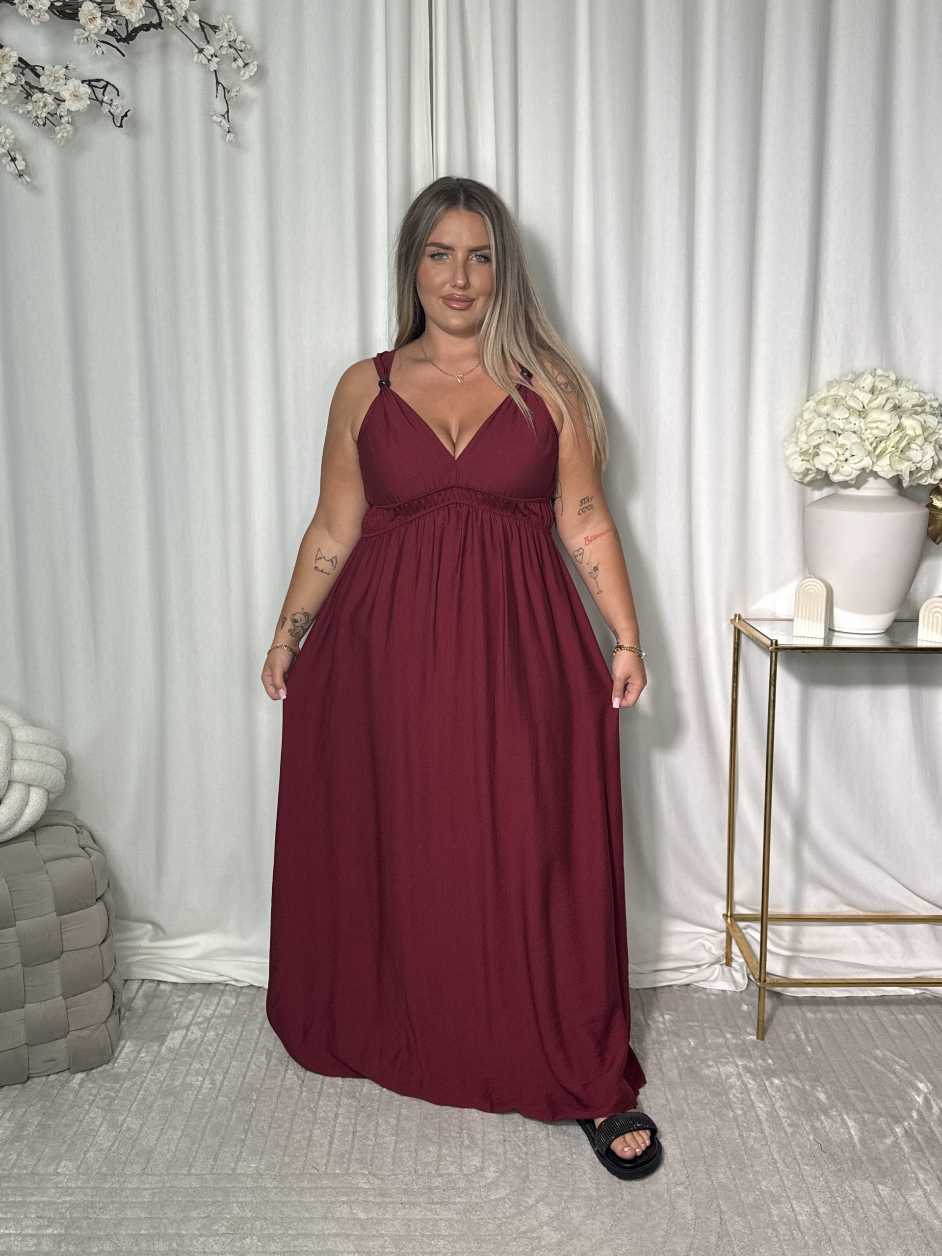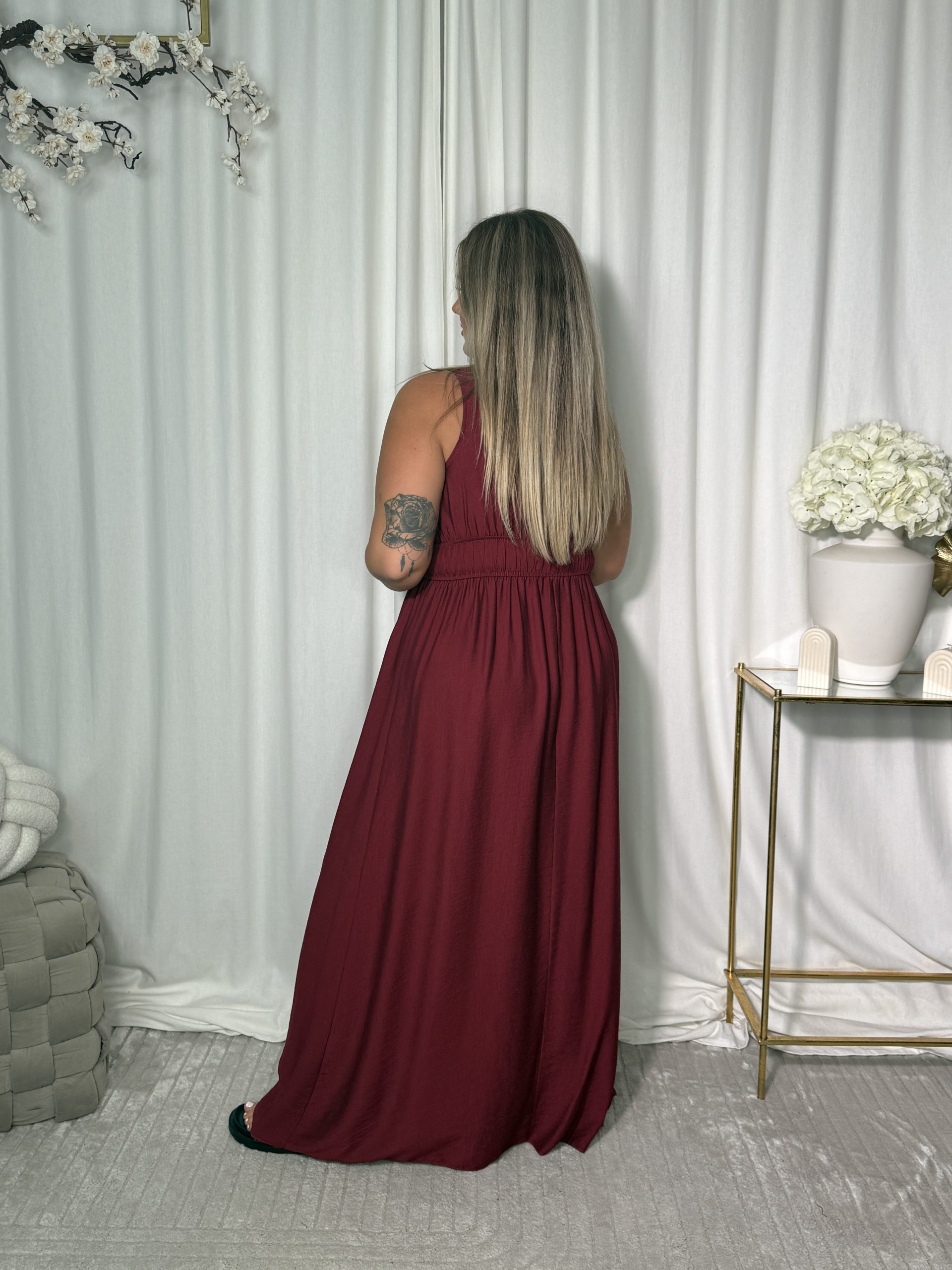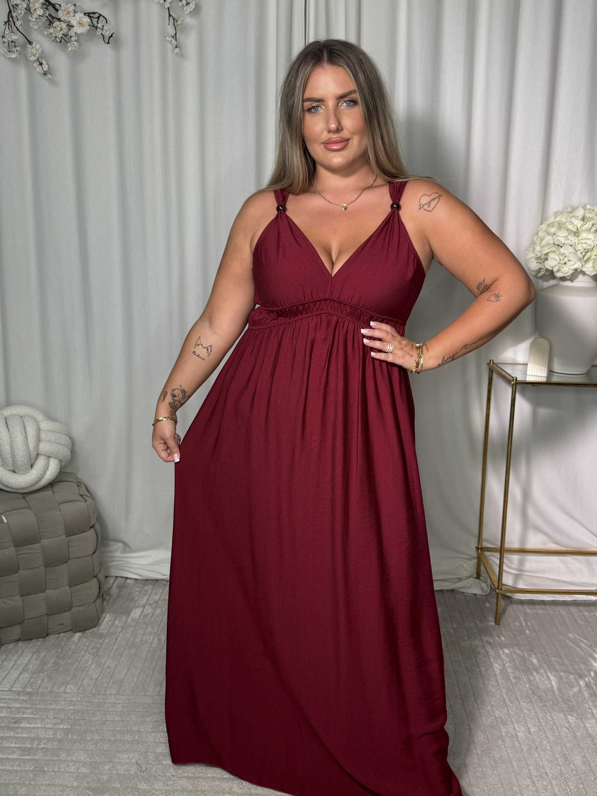 Zwiewna sukienka Fatina maxi uszyta z lekkiej wiskozy, która pięknie układa się na sylwetce. Model z głębokim dekoltem i ramiączkami zdobionymi dekoracyjnymi koralikami. W talii delikatne marszczenie, które subtelnie podkreśla figurę. Idealna na lato – zarówno na co dzień, jak i na wyjątkowe okazje.