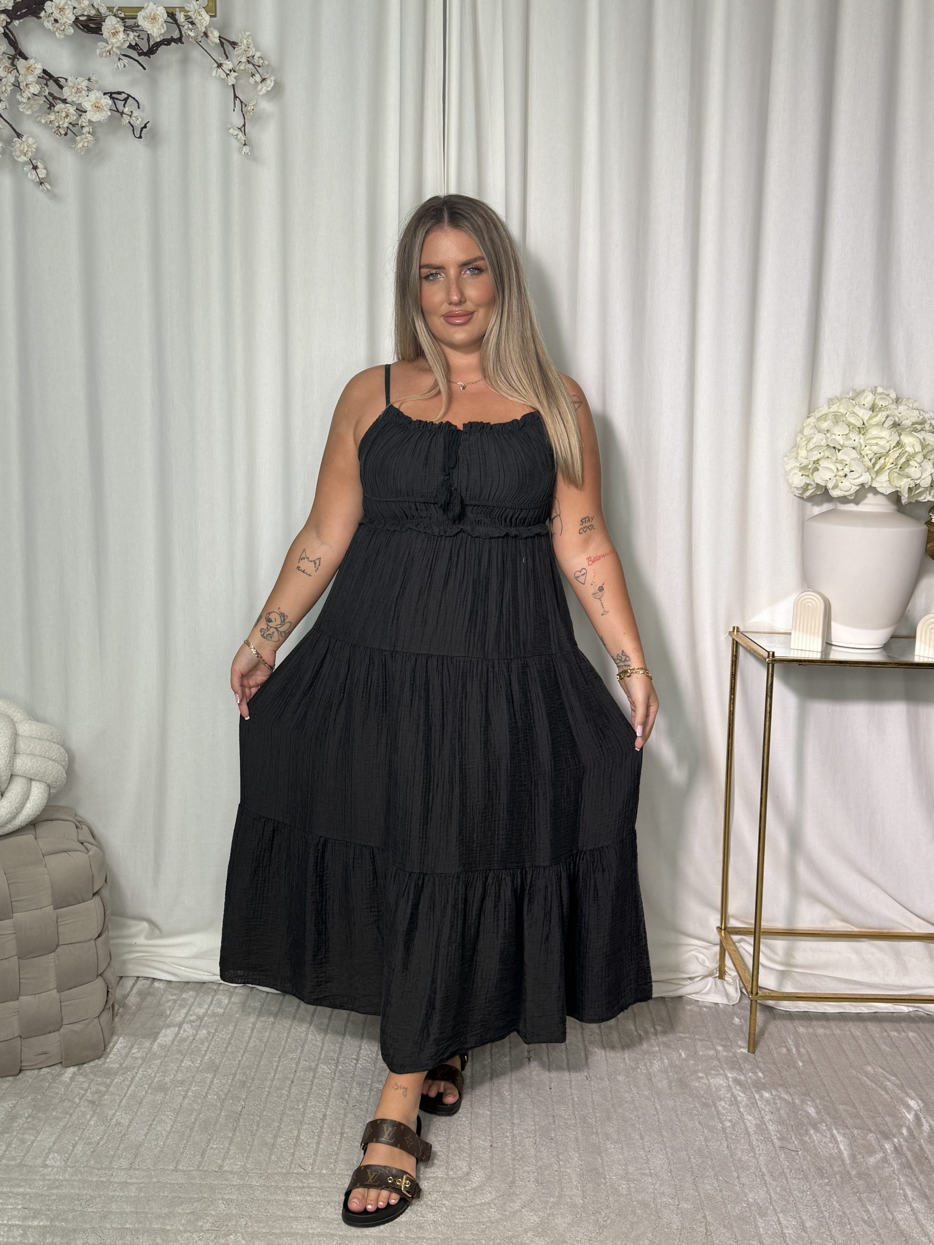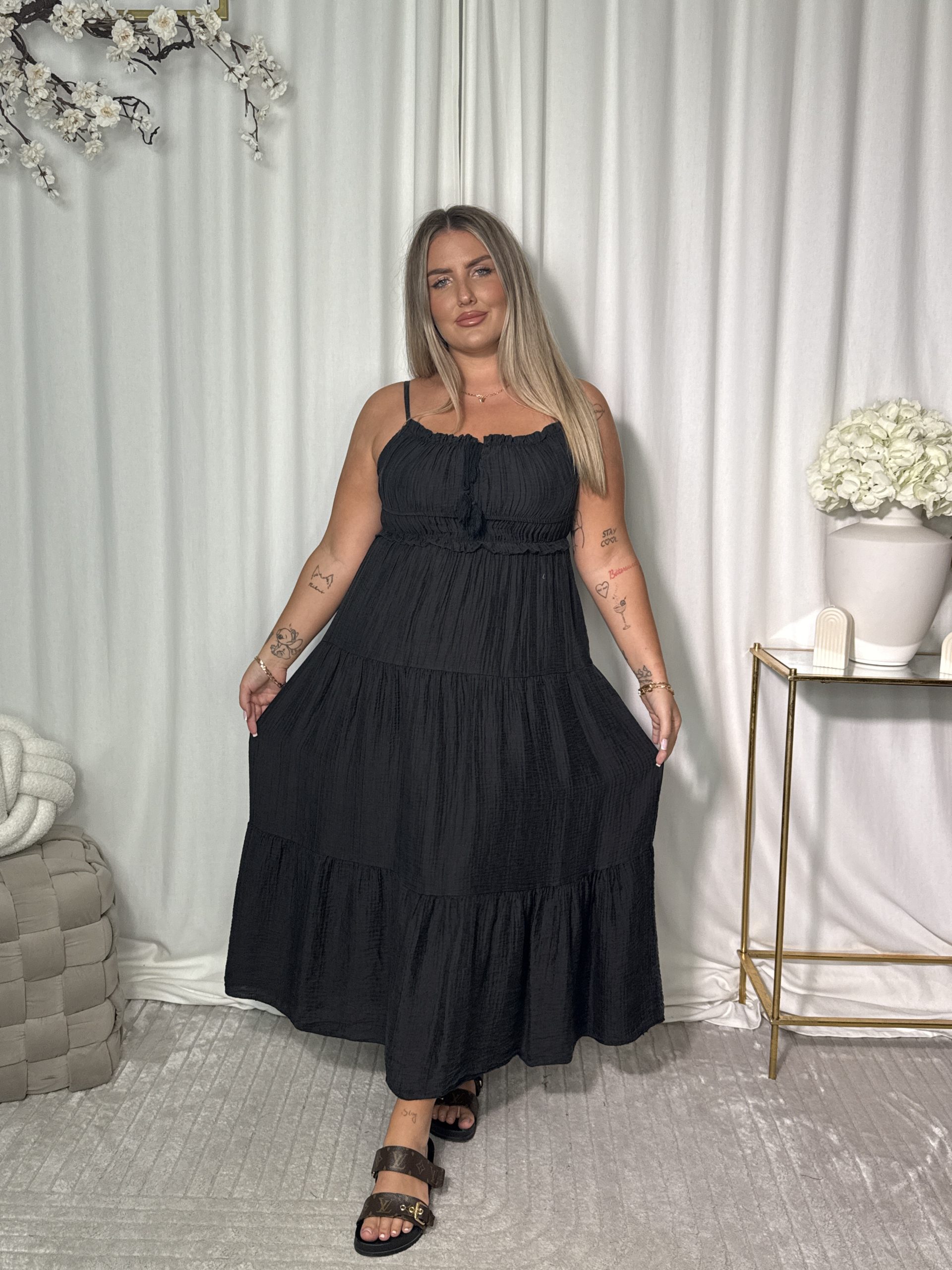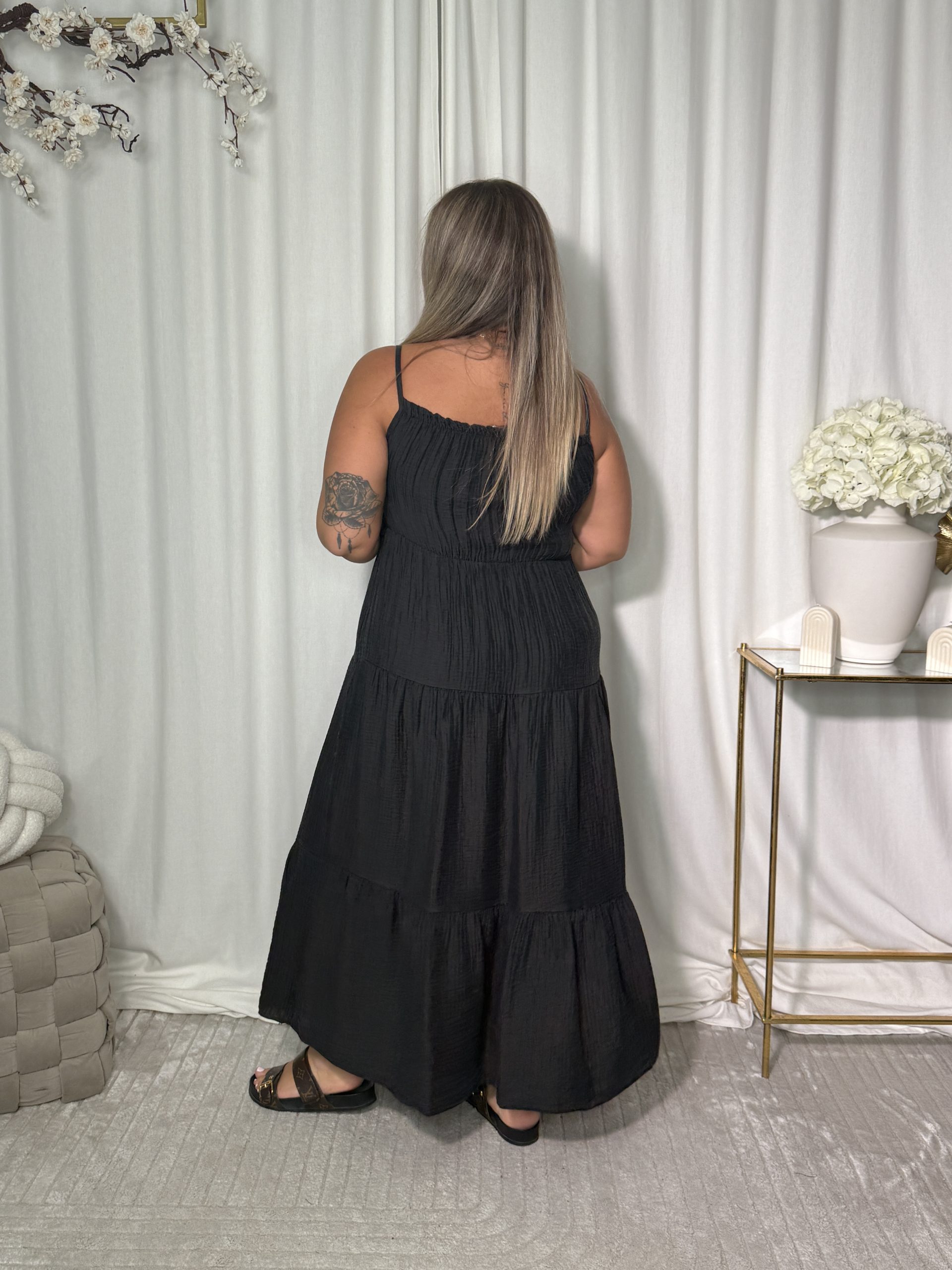 Z delikatnym marszczeniem przy dekolcie, subtelnymi ramiączkami i luźnym dołem — wygląda jak z wakacyjnej pocztówki!
