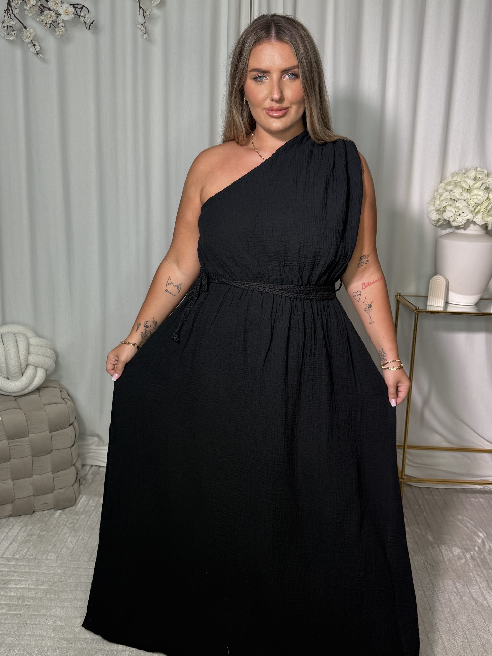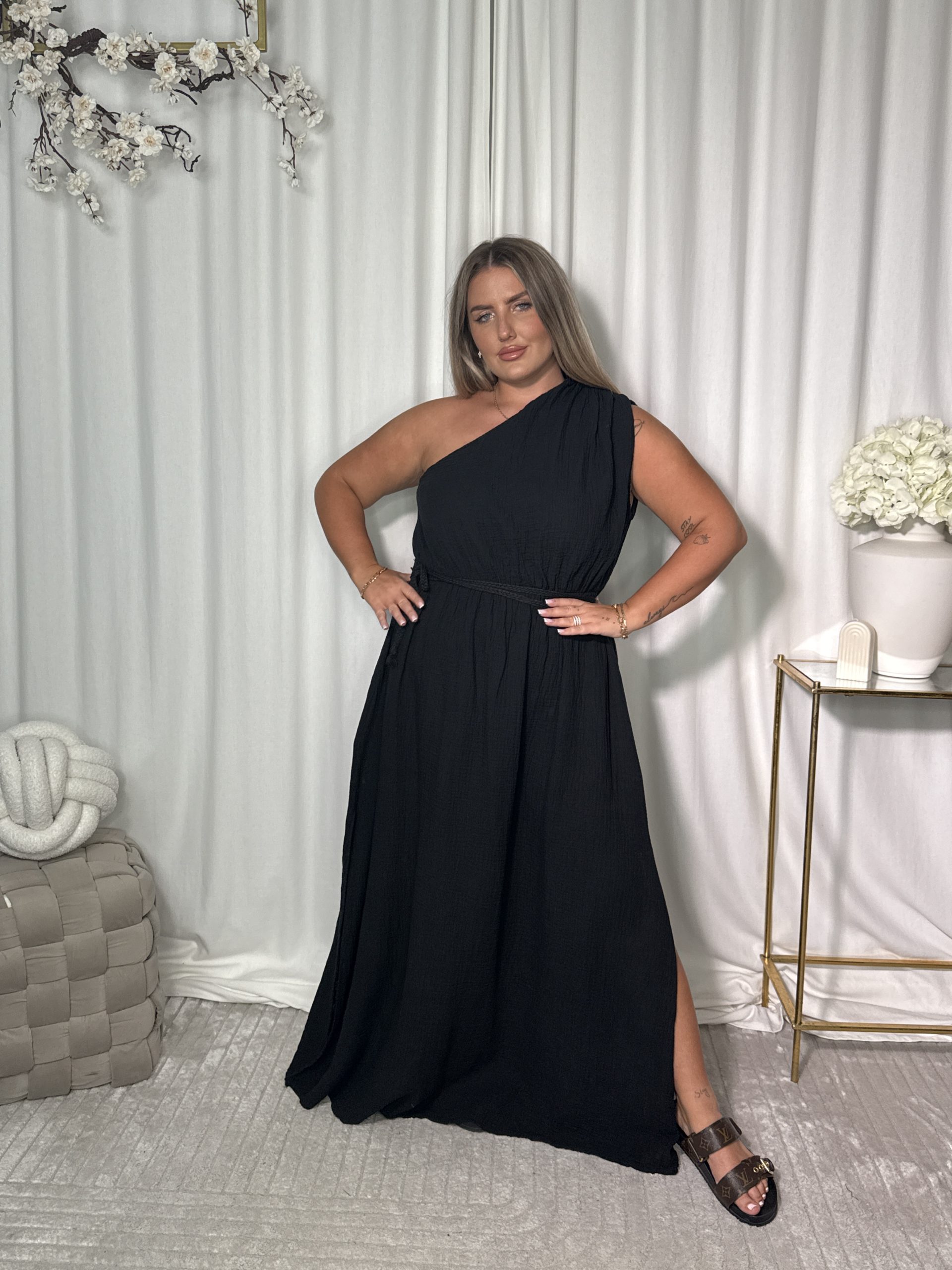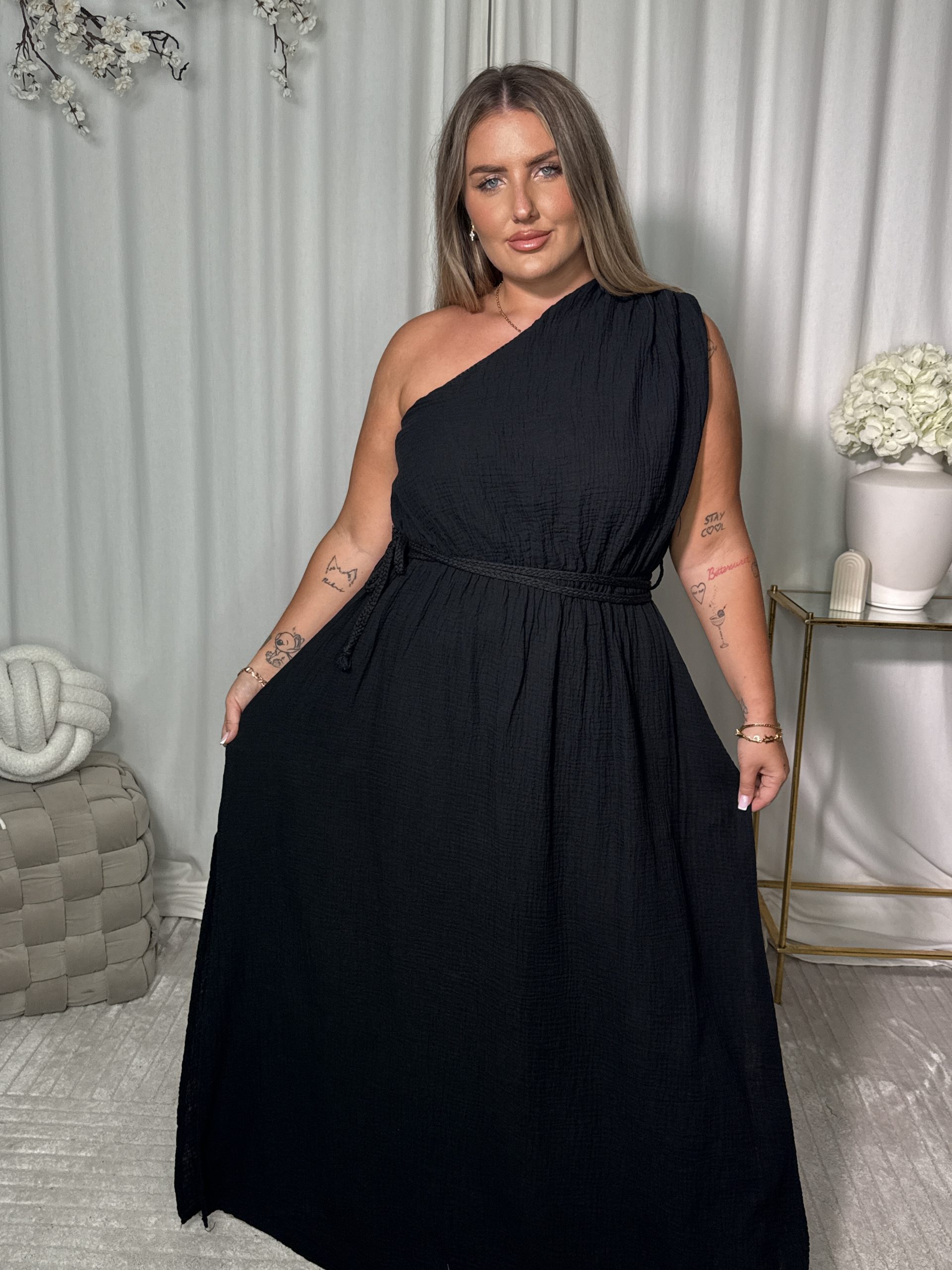 Lekka jak chmurka, wygodna jak piżamka, a przy tym totalnie efektowna! Sukienka z mięciutkiego, oddychającego muślinu z asymetrycznym dekoltem na jedno ramię i rozcięciem z boku. Dzięki wiązanemu paskowi podkreśla talię i pięknie układa się w ruchu. Idealna na lato – zarówno na plażę, jak i na wyjście w miasto.