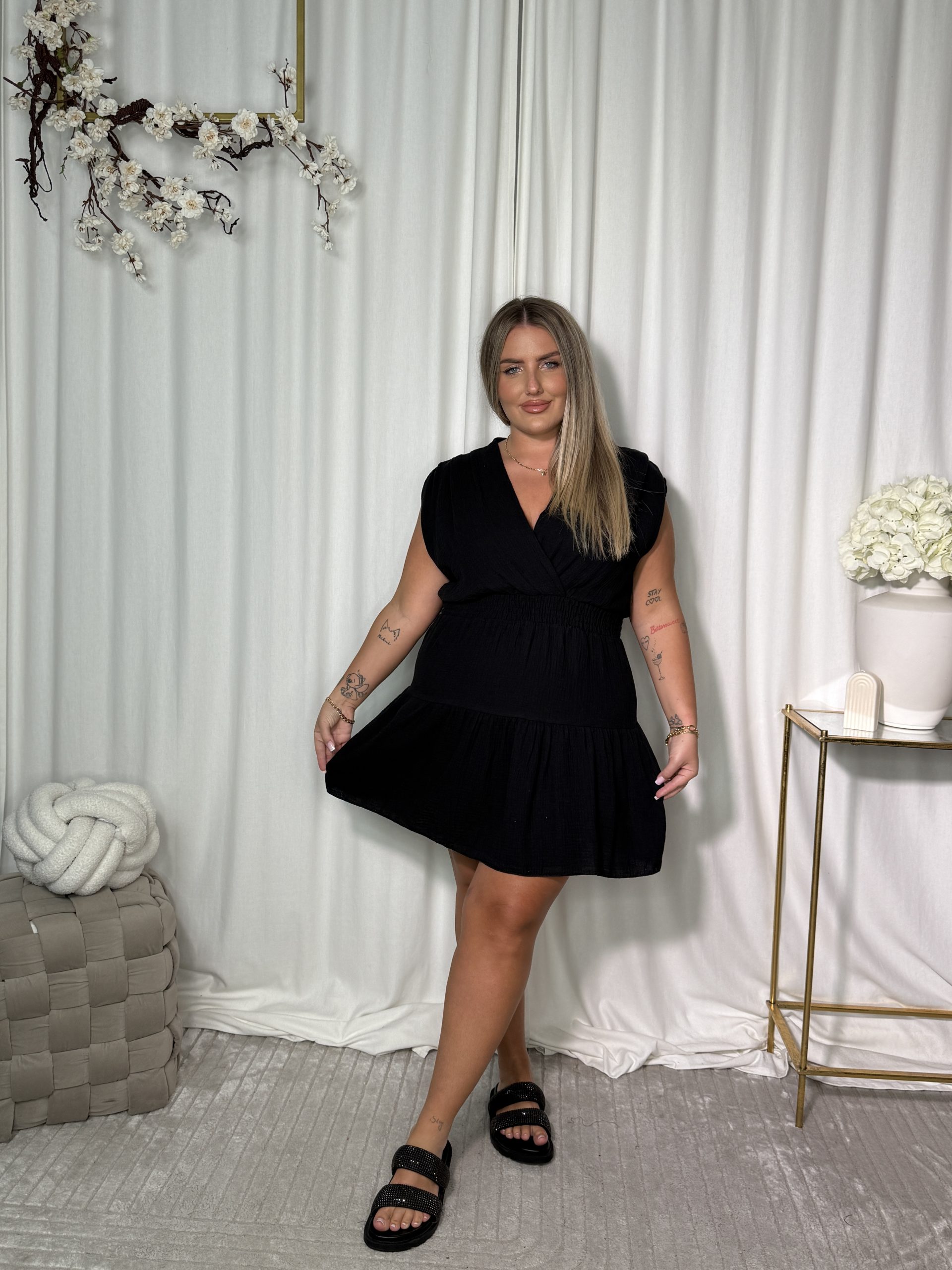 Mirella sukienka to kwintesencja wygody i kobiecego uroku. Wykonana z miękkiego, oddychającego bawełnianego muślinu, otula ciało niczym chmurka. Kopertowy dekolt pięknie podkreśla biust, a elastyczna talia i rozkloszowany dół tworzą ultrakobiecy fason, który pasuje do każdej sylwetki. Idealna na lato, spacer po mieście, garden party lub… po prostu, kiedy chcesz wyglądać dobrze bez większego wysiłku.