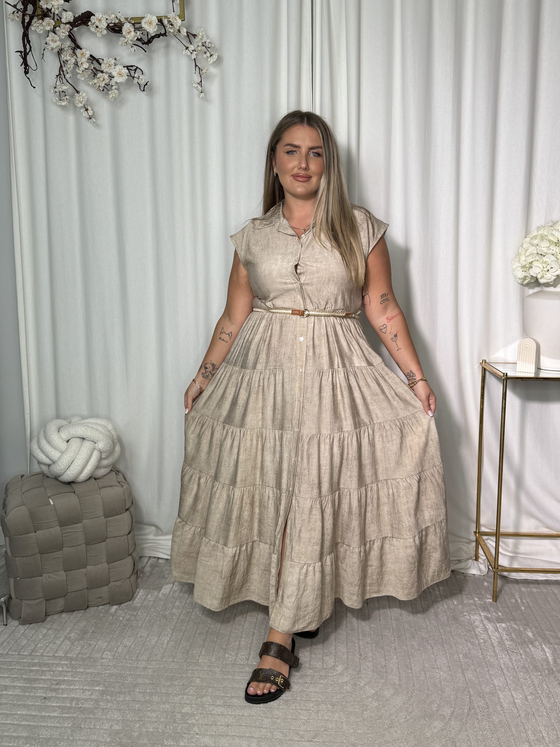 Sukienka Noliena wykonana z przewiewnej wiskozy, która wygląda jak len, ale jest znacznie bardziej przyjemna dla skóry i nie gniecie się tak łatwo!