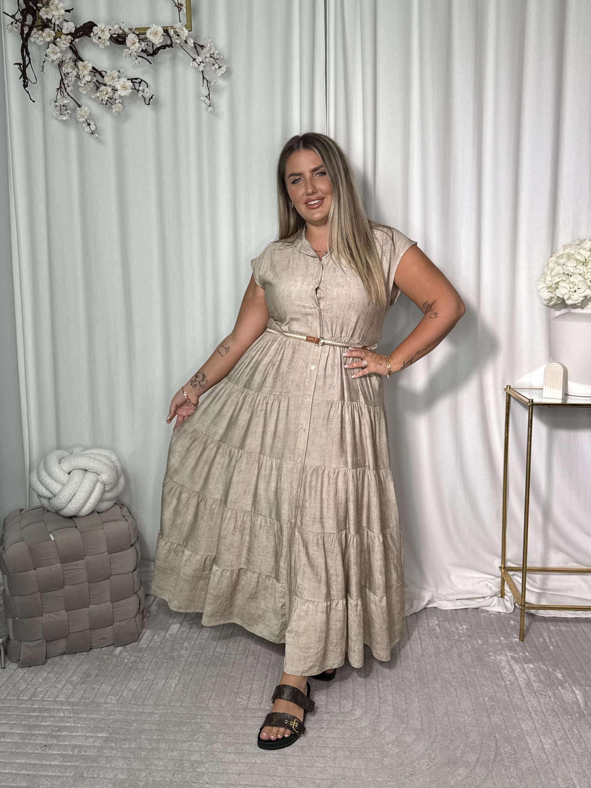 Kolor? Idealny beż, który pasuje do wszystkiego. Materiał? Miękki, oddychający i superkomfortowy.Efekt? Styl boho z nutką klasy!