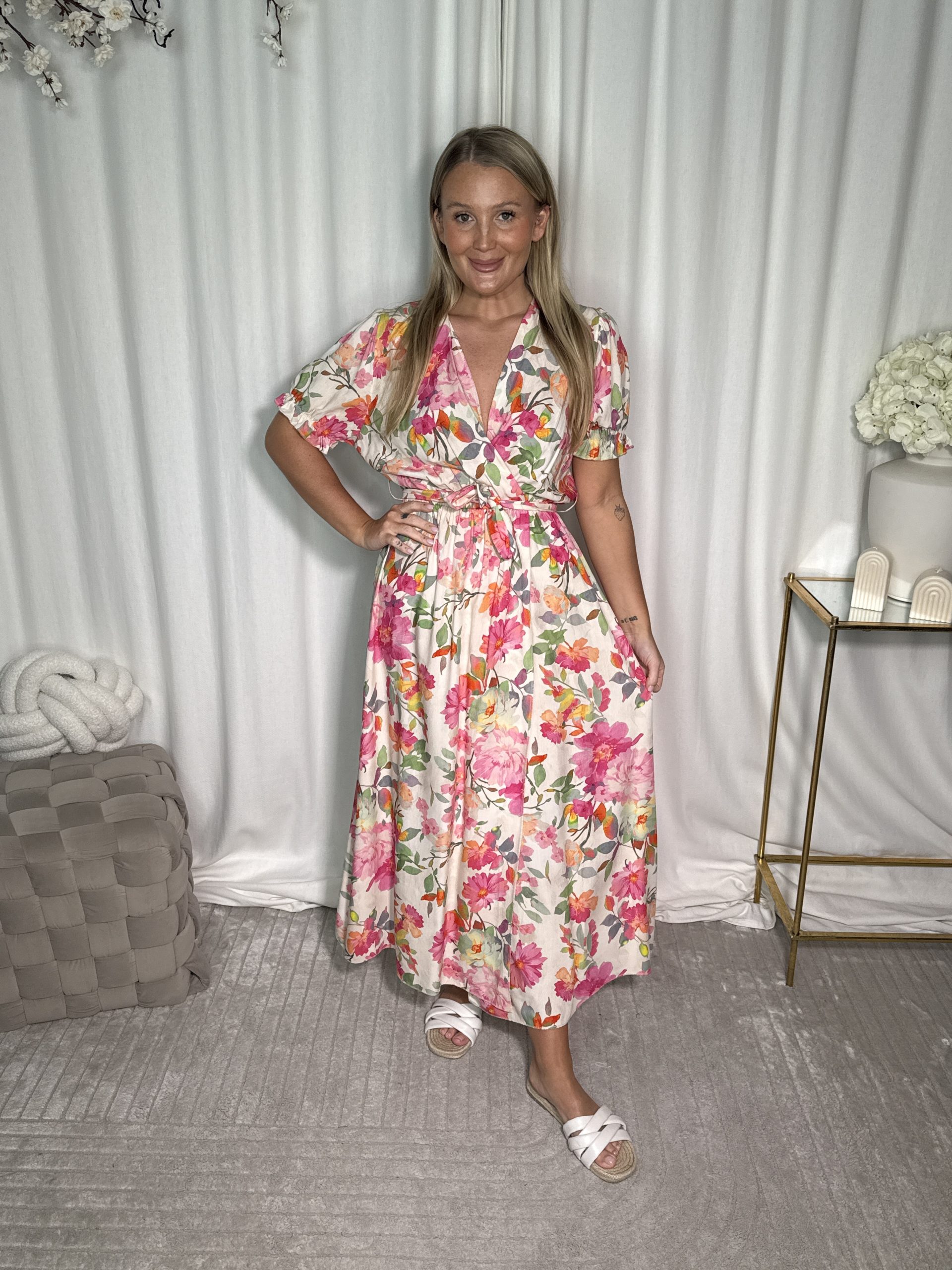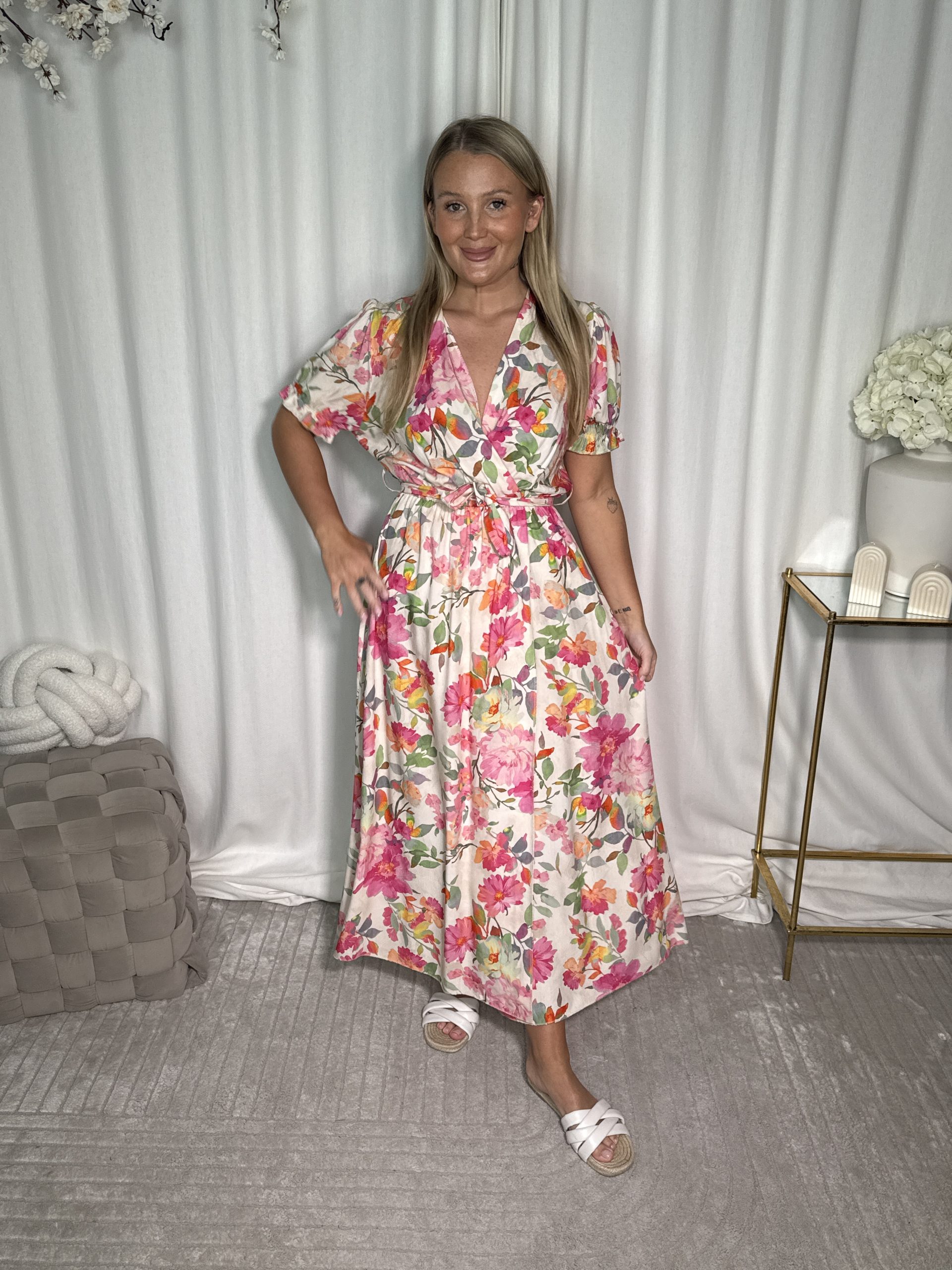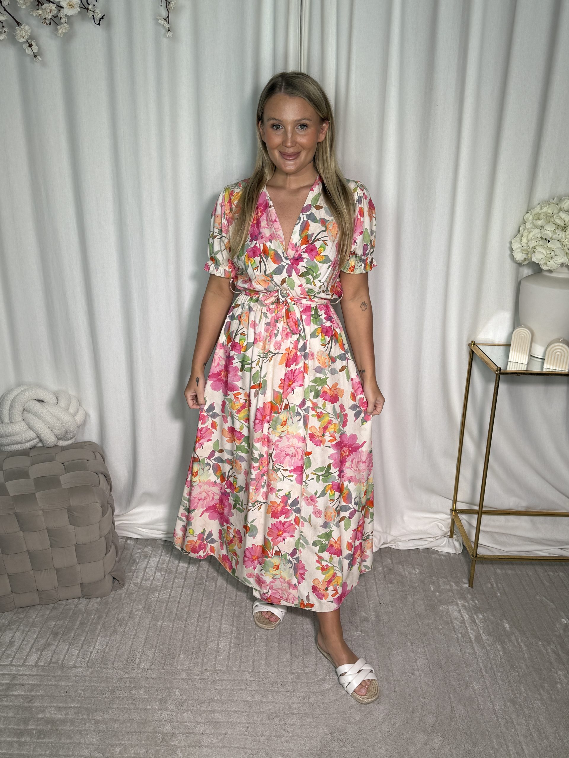 Sukienka Salma to luźny ale bardzo kobiecy model. Pasek w talii podkreśli nam ją, a rozcięcie na nogę doda uroku!
