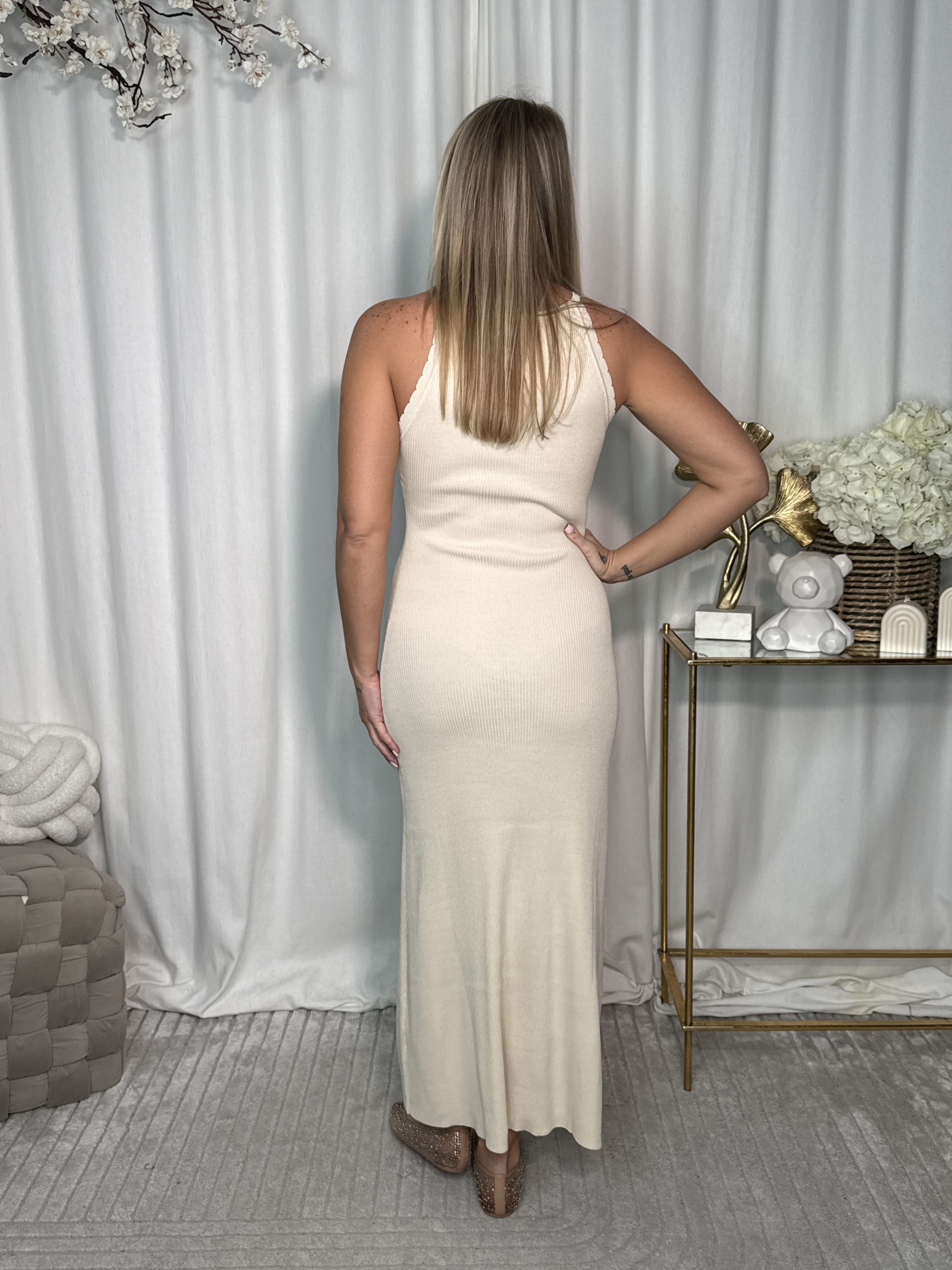 Długa sukienka Tousi o prostym i smukłym kroju, wykonana z lekkiej, prążkowanej dzianiny, która subtelnie dopasowuję się do sylwetki, zapewniając komfort noszenia. Minimalistyczny desing sprawia, że idealnie sprawdzi się zarówno na co dzień, jak i w eleganckich stylizacjach. Dostępna w trzech wersjach kolorystycznych.