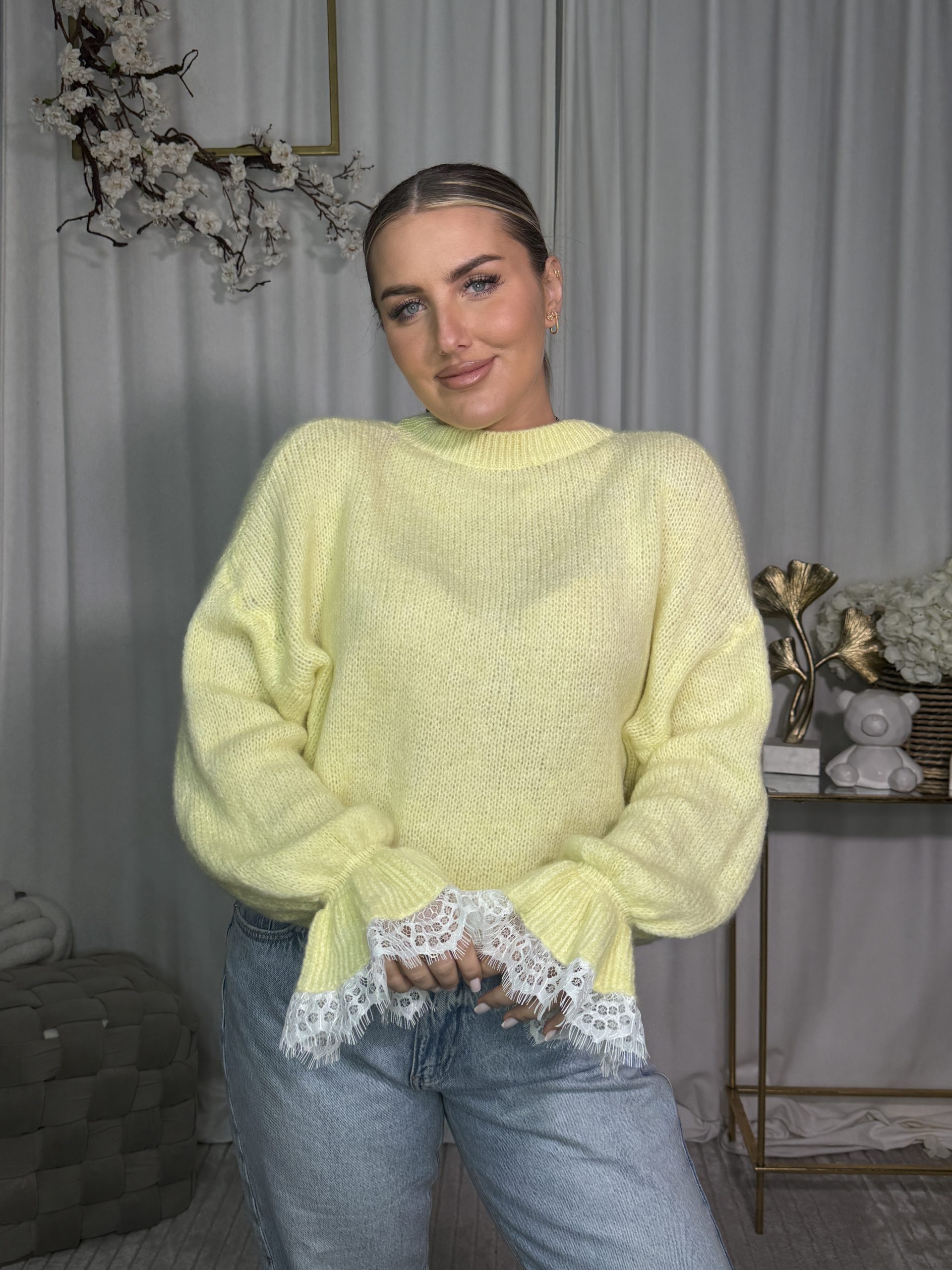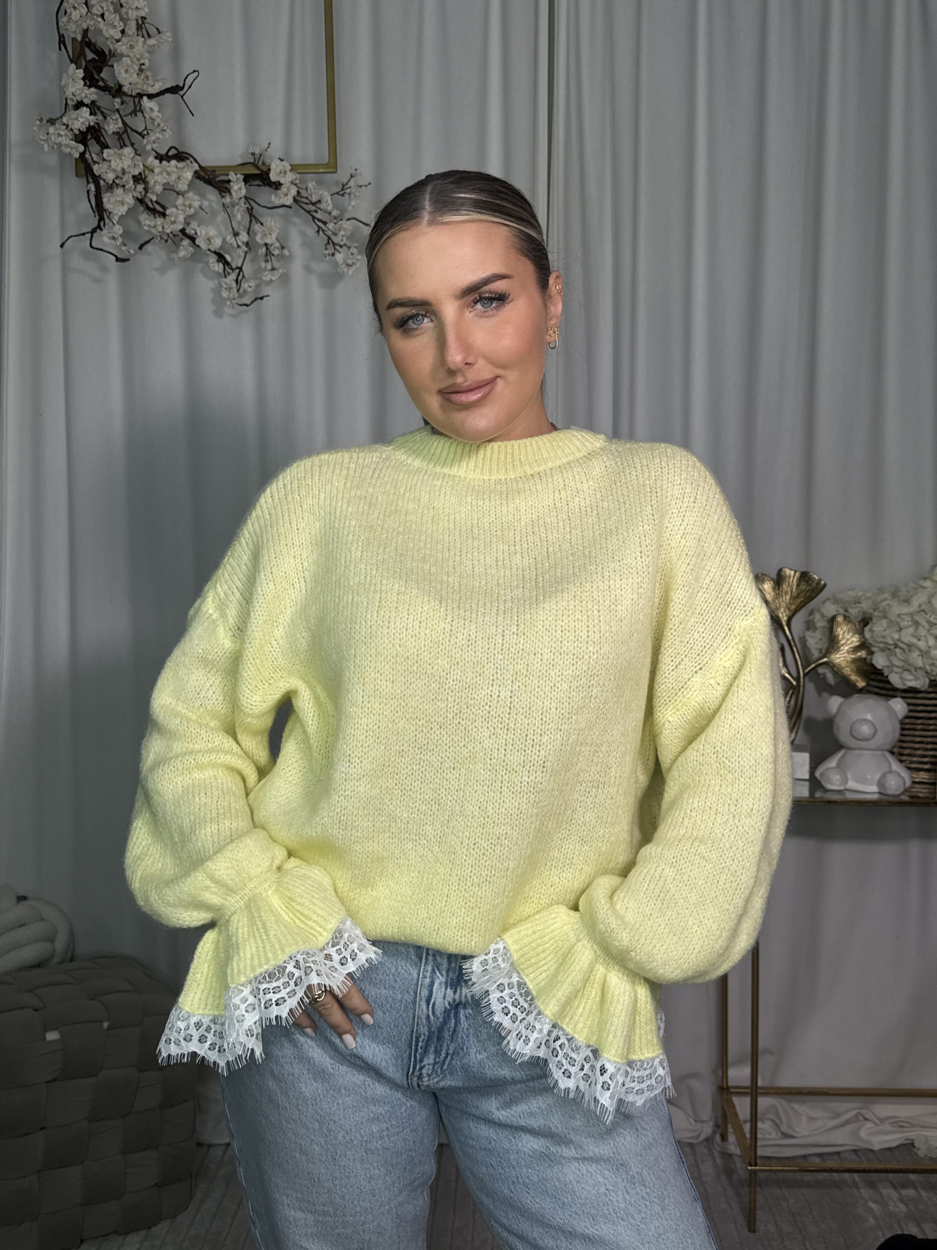 Sweter o luźnym kroju w przepięknym pastelowym kolorze, oraz subtelnym a zarazem bardzo ciekawym wykończeniem rękawków. Idealnie sprawdzi się w wiosennych stylizacjach i delikatnych kobiecych lookach.
